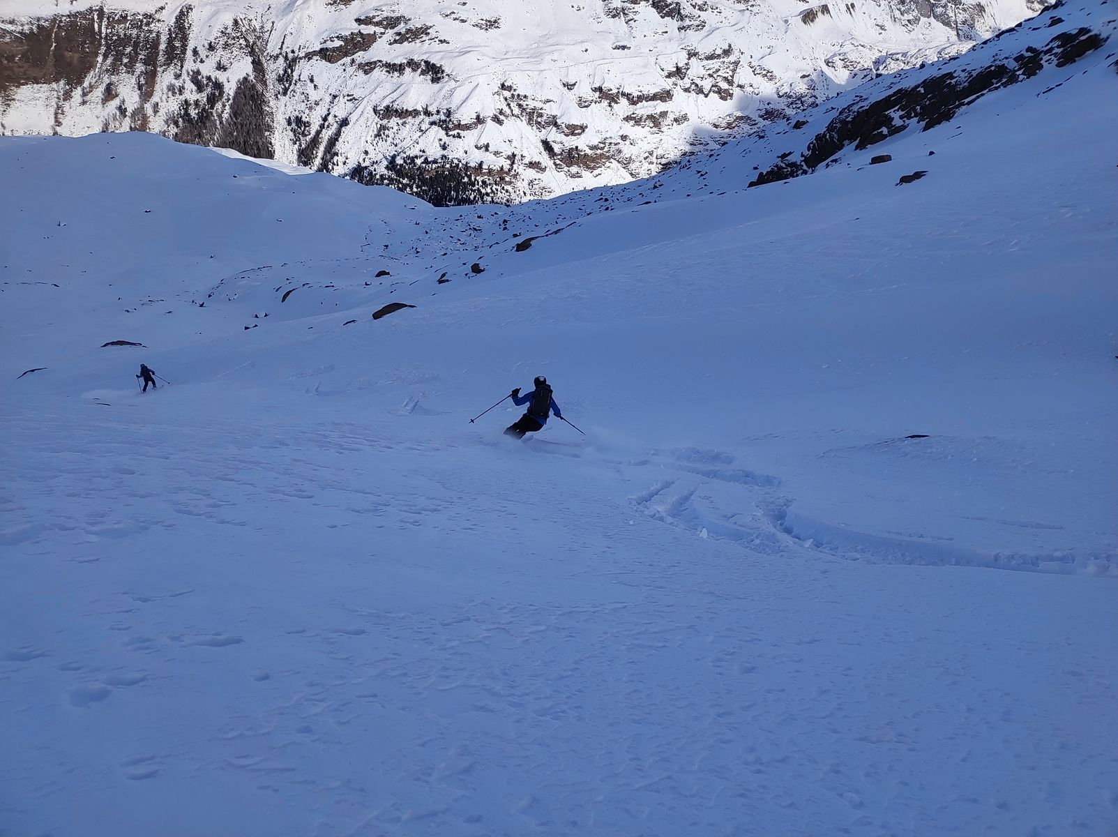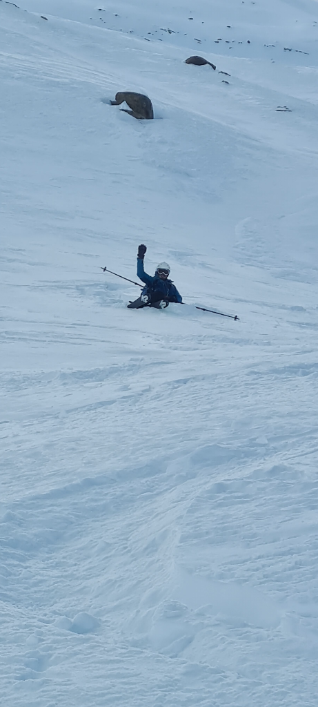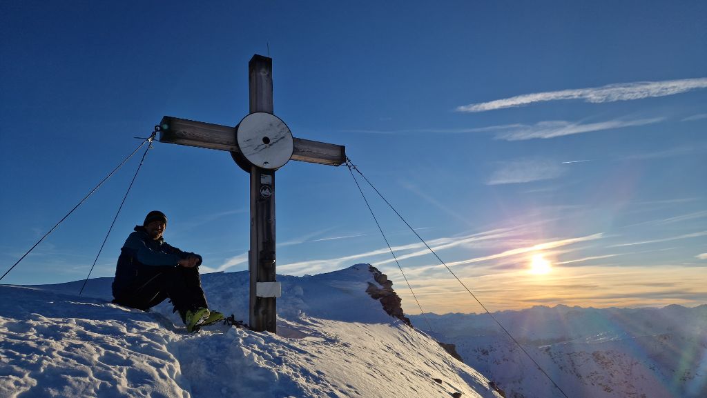 Am Samstag sind wir vormittags auf die Valbenairspitze; Abfahrt über steile Variante Nordost-Hang direkt vom Gipfel. Geil!