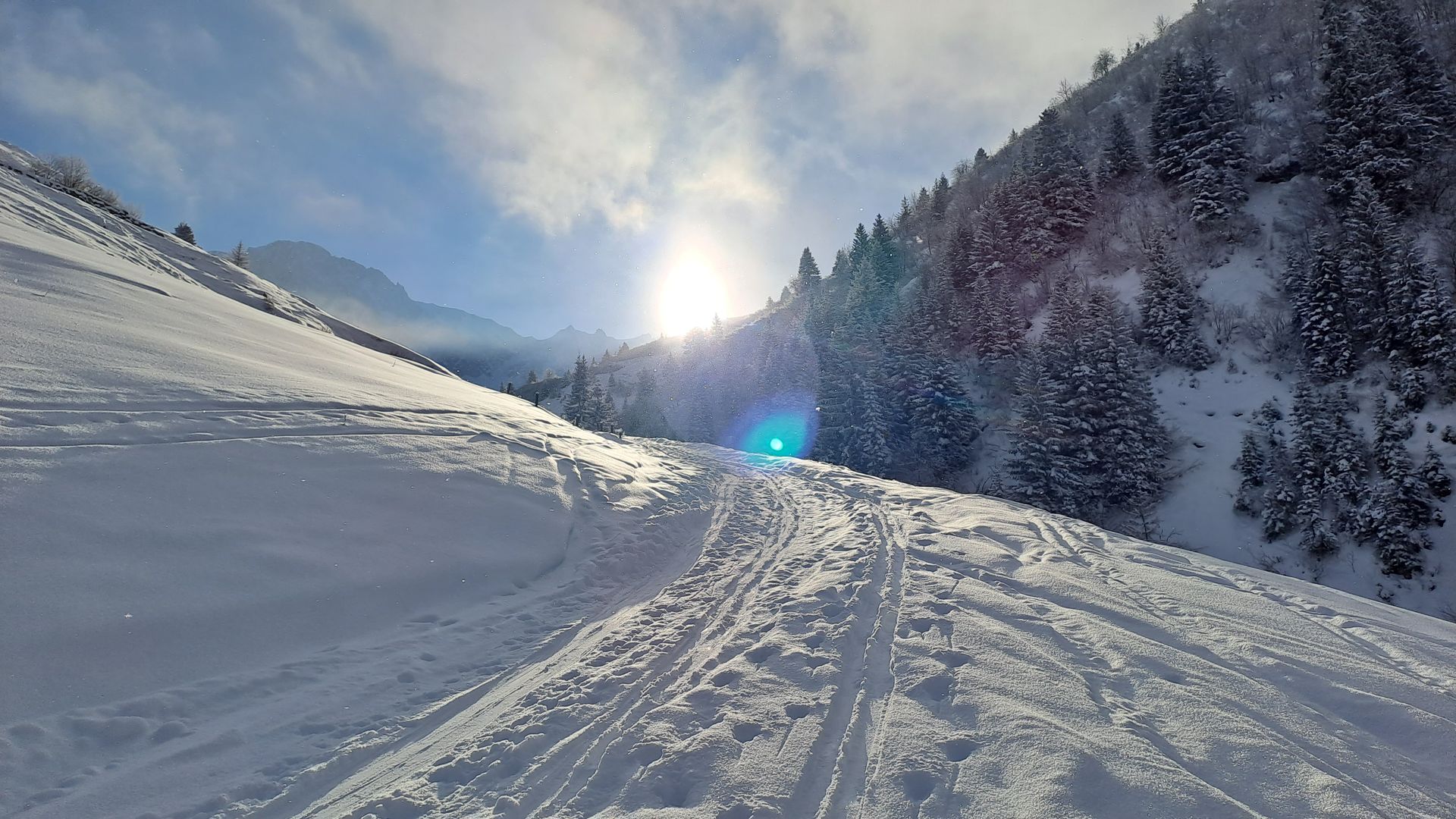 Im Talboden liegt dann deutlich mehr Schnee, bis zu 50cm lockerer Pulverschnee.