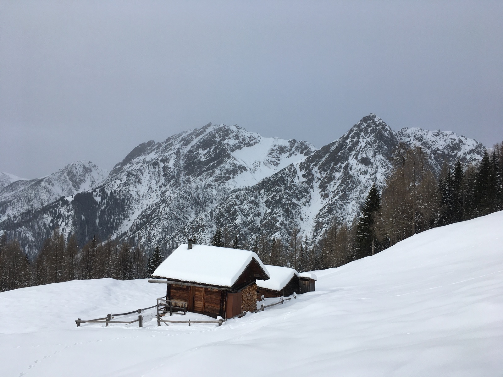 Besonders viele Touren gibt es von Obertilliach aus - das ist aber auch der einzige Ort im Tal, der eher touristisch ist, allerdings mit sehr schönem Ortsbild. In Obertilliach gibt es auch das einzige größere Skigebiet (Golzentipp - nett) und außerdem sehr viele Möglichkeiten für Langlauf. Allerdings waren die Hotels, welche ich dort anfragte, ausgebucht - daher Wechsel auf den Gasthof zur Post in St. Lorenzen: Sehr empfehlenswert, preislich fair und der Chef ist selbst begeisterter Skitourengeher. Der Nachteil einer Übernachtung in St. Lorenzen ist, dass es vom Ort aus nur zwei Skitouren gibt (Samalm und Lackenkreuz bzw. weiter zum Riebenkofel), so dass man zu den anderen Touren mit dem Auto oder dem Bus (Richtung Obertilliach meistens stündlich) fahren muss - und die Distanzen sind nicht ganz kurz.