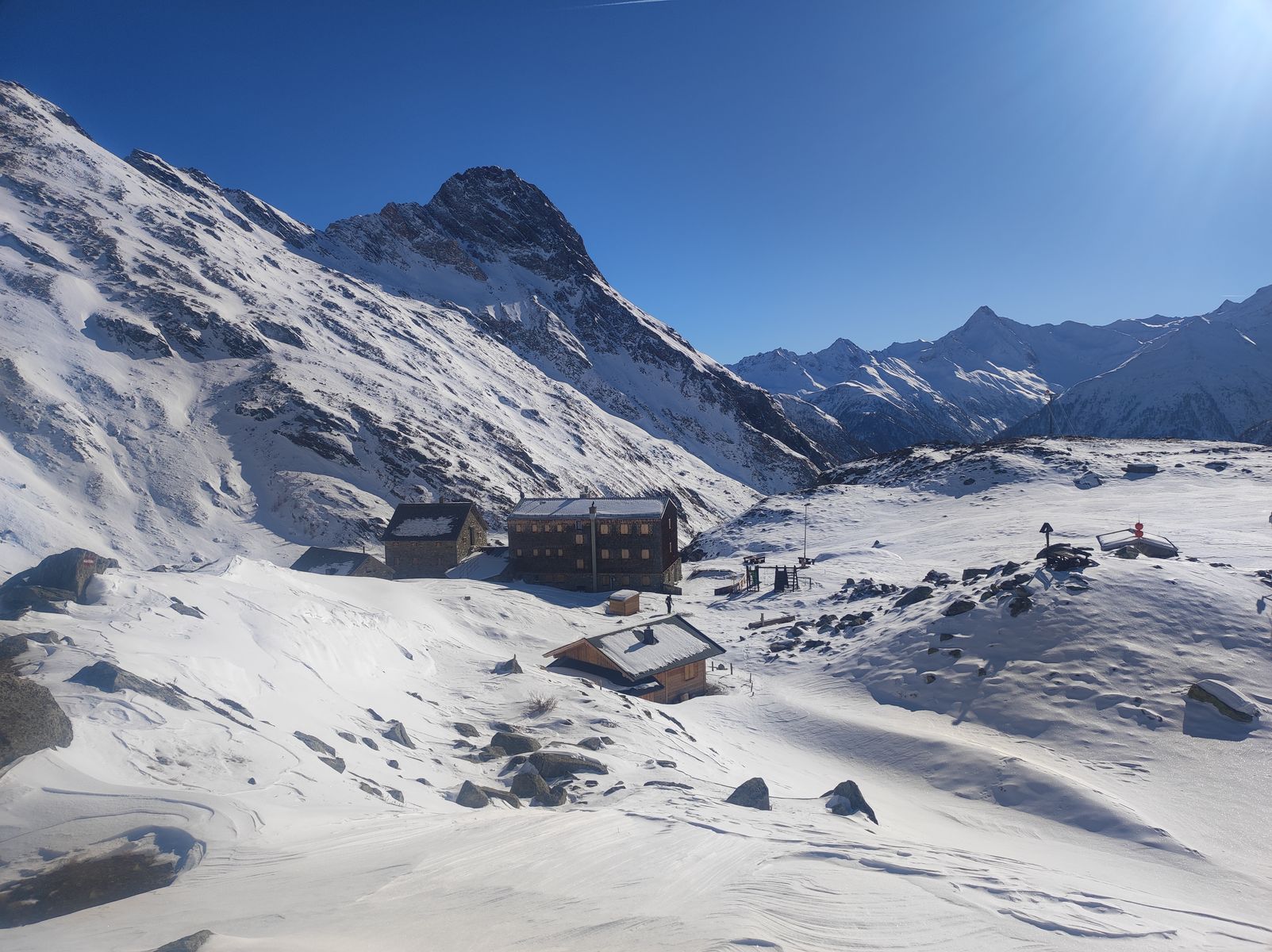 Schon der Aufstieg zur Essener-Rostocker Hütte war wegen der geringen Schneelage mit ein paar Abschnallern eher mäßig genussvoll und ließ einen leicht vor der Abfahrt schaudern - diese war dann auch echt murksig... Von der Hütte geht es in leichtem Auf und Ab zum Sandboden (ca 2200 Meter) hinüber, wo der eigentliche Gipfelanstieg beginnt, bzw wo heute unsere Skitour geendet hat.