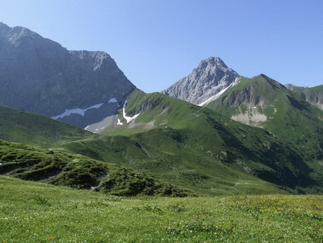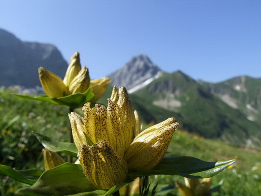 für Blümchen-Fans sind die vorderen Lechtaler immer ein Genuss: im Moment sind die Hänge pink-lila (Almenrausch+Storchschnabel), zu den "üblichen Verdächtigen" blühen Türkenbund und felderweise Tüpfelenzian (nicht selten, aber immer wieder schön). Im Brennhüttental gibt es auch seltenere Pflänzchen wie das rundblättrige Wintergrün, Waldhyazinthen oder Weisszüngel