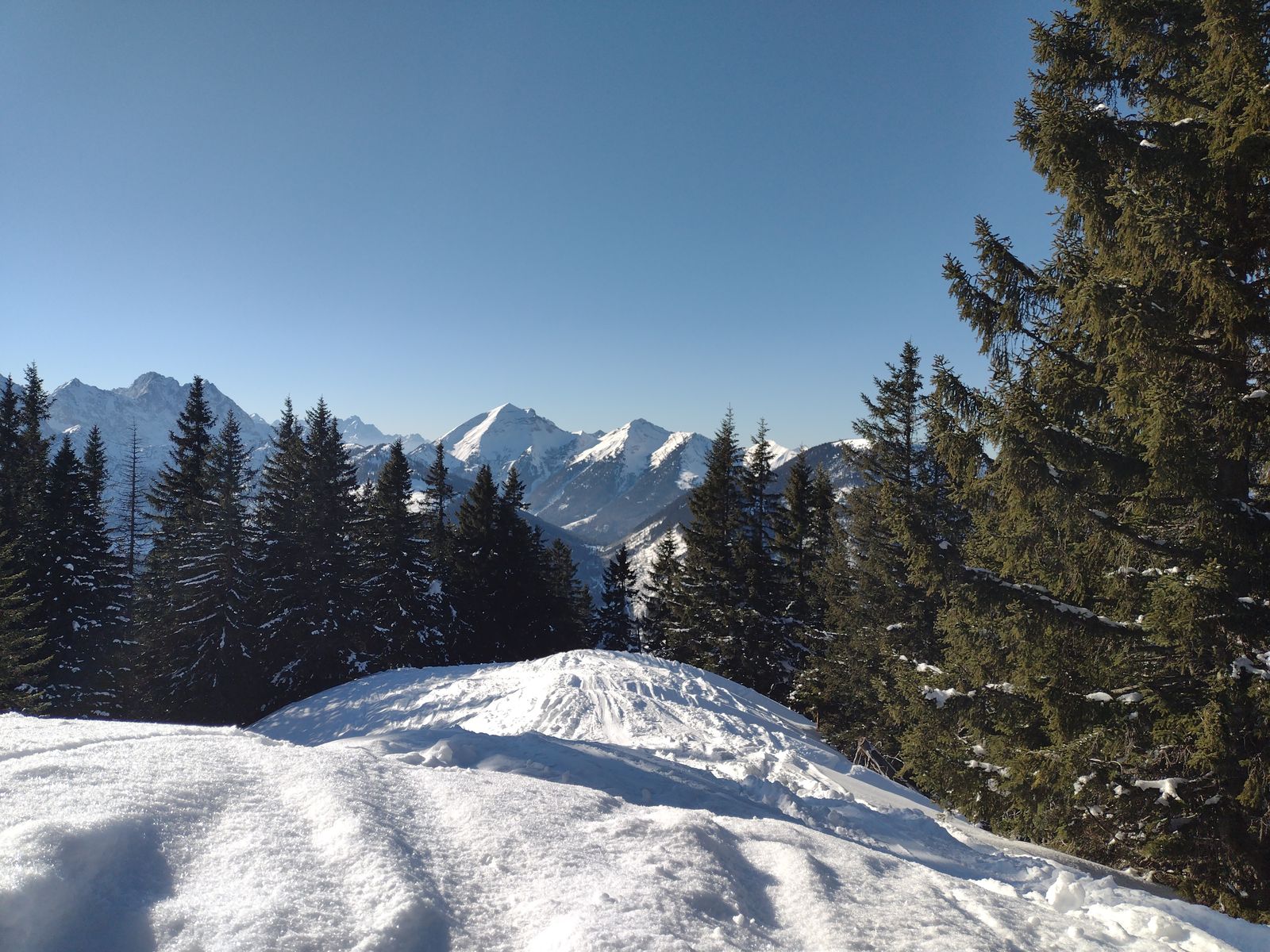 Forststraße ist in gutem Zustand, aber trotzdem keine hohe Schneelage, für Anfang Februar.