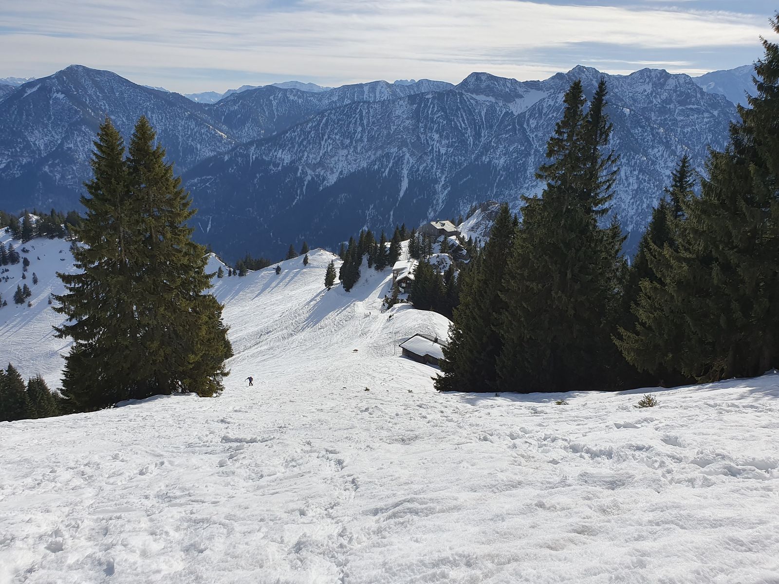 Vom Bankerl die Abfahrt fasst pistenmässig eingefahren, selten am Pürschling.