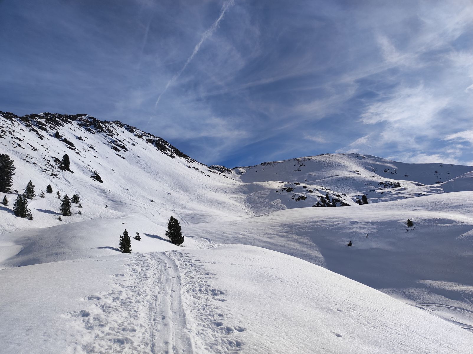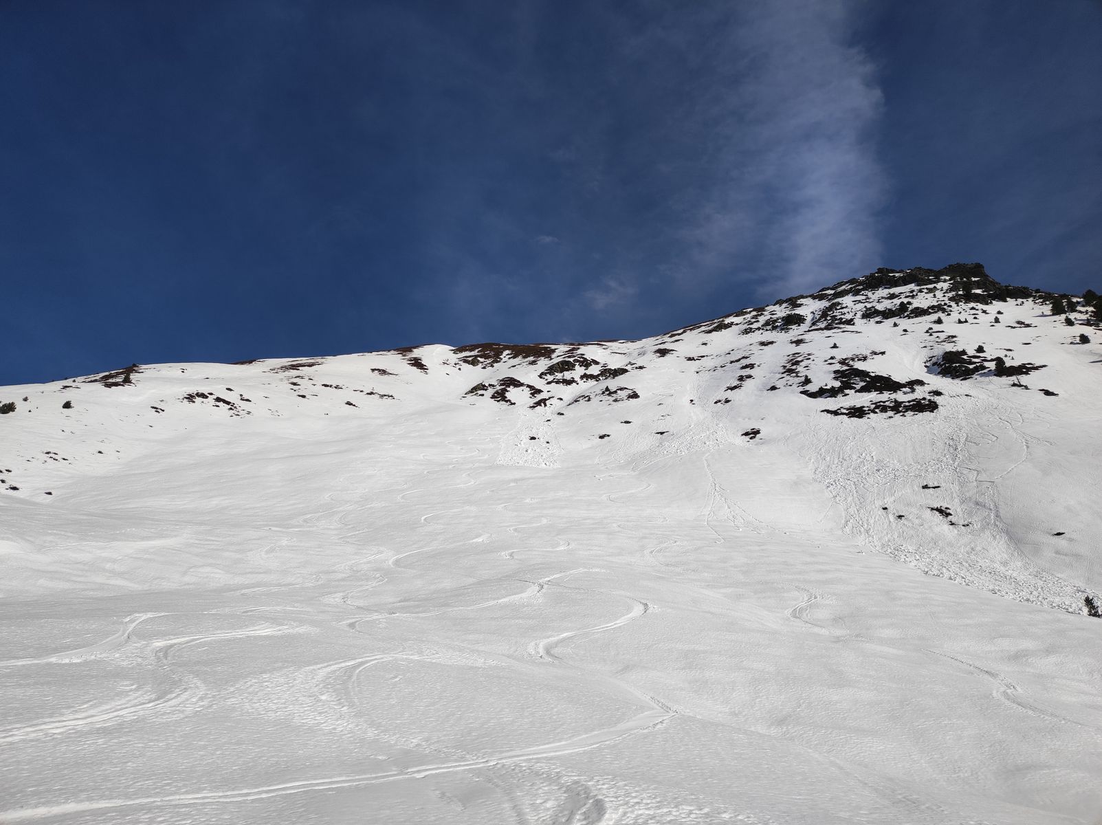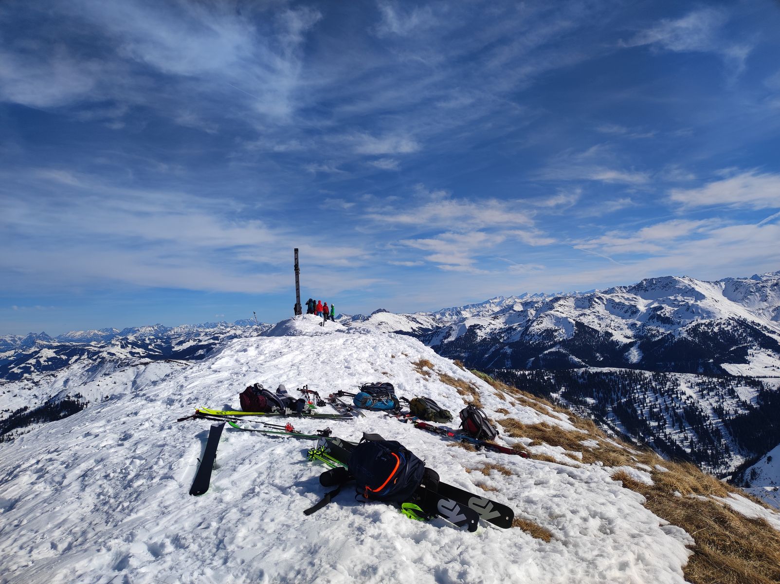 Wir sind heute von Alpbach aus zunächst auf den Mareitkopf (auch Heimjoch genannt), einen Vorgipfel des Großen Galtenbergs gegangen. Die Hoffnungen auf Firn erfüllten sich auf der ostseitigen Abfahrt (10.30 Uhr) nicht ganz, da der Schnee hier gleich sumpfig wurde.