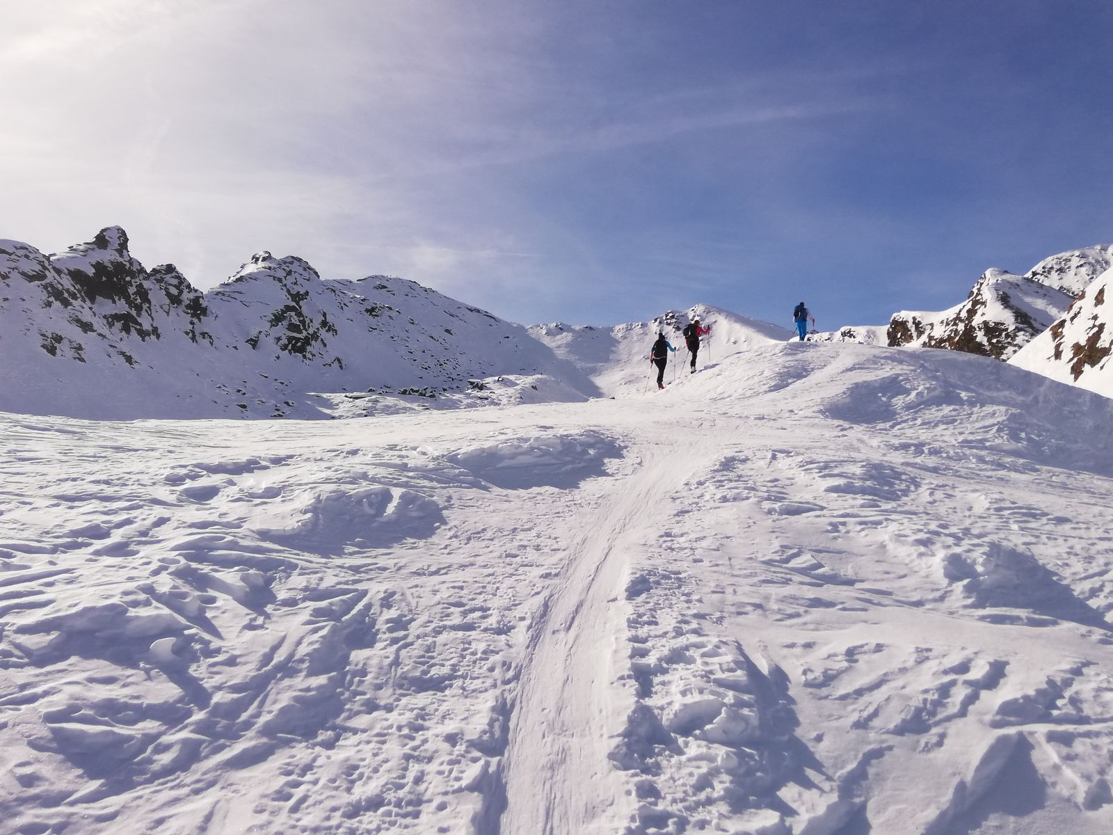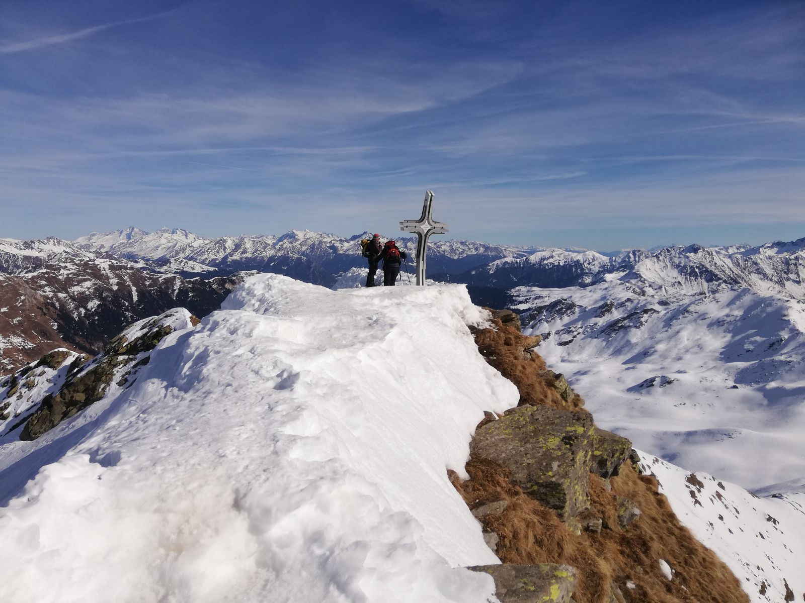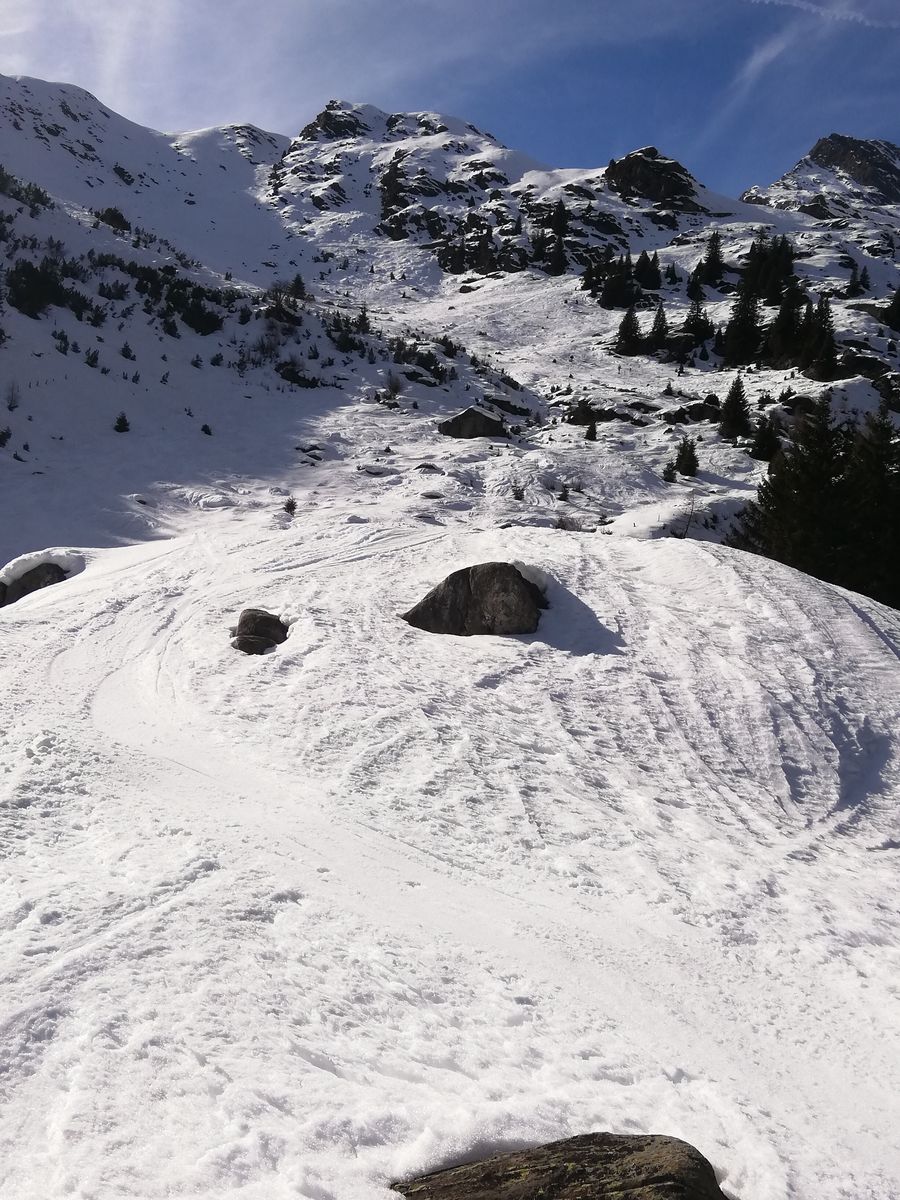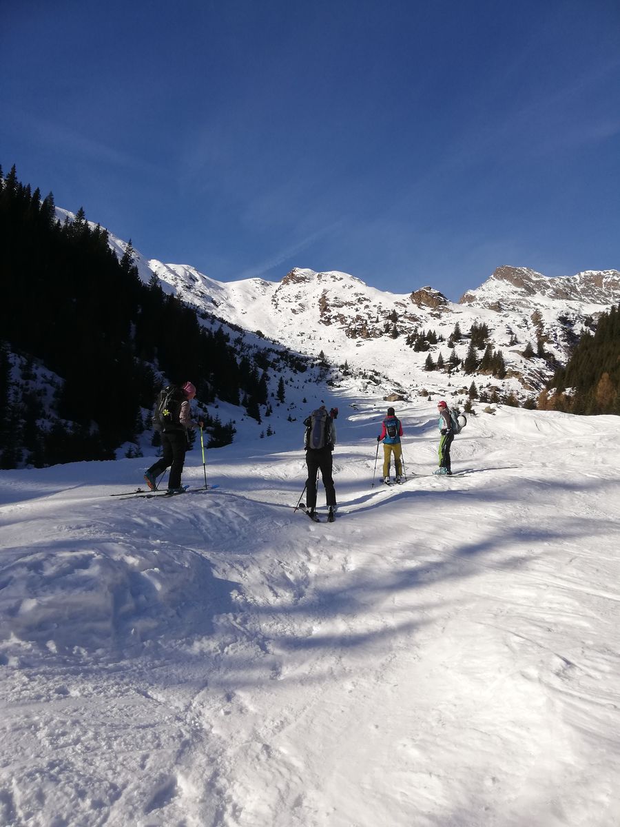 Heute vom Talende zunächst auf Forststraße, dann über Osthänge zur Klammalm und kurz nach dieser nach Süden abbiegen. In den Sattel südlich des Fladinger Berg hoch und in das Nachbartälchen wechseln und nach Süden zum Gipfel, zum Schluss ziemlich hart, Harscheisen zwar nicht zwingend, aber sinnvoll. In der Abfahrt oberster Gipfelhang ziemlich hart, dann aber bald griffiger Harsch, gut zu fahren. Unterhalb der Klammalm weich, an einzelnen Engstellen muss man um einige Felsen Slalom fahren. Auf der Forststraße einmal etwa 30m Ski tragen, vor dem zweiten aperen Stück kann man nach links auf den untersten Hang absteigen und diesen bis zum P abfahren. Insgesamt zwar wie überall wenig Schnee, aber gut zu fahren und empfehlenswert.