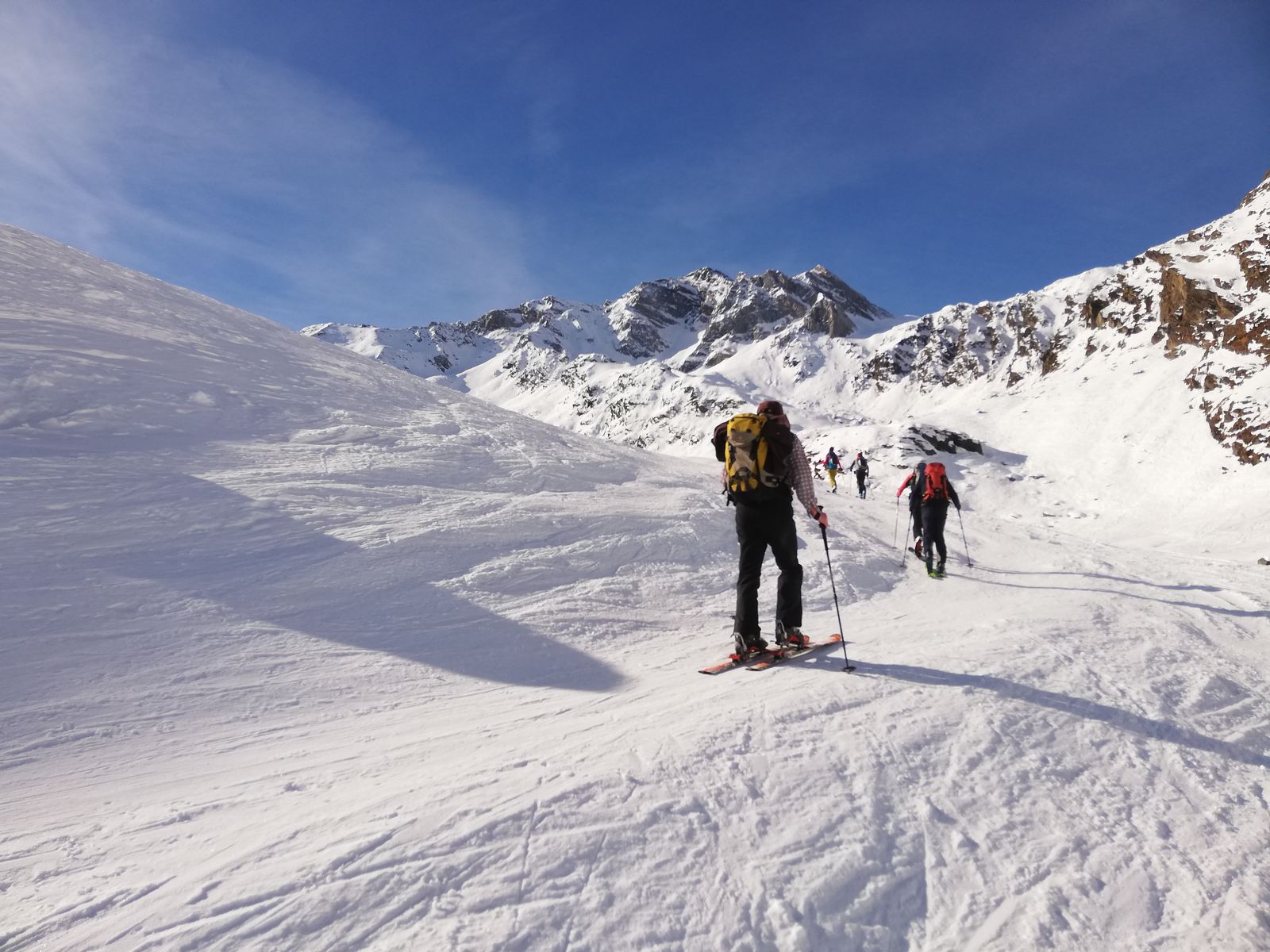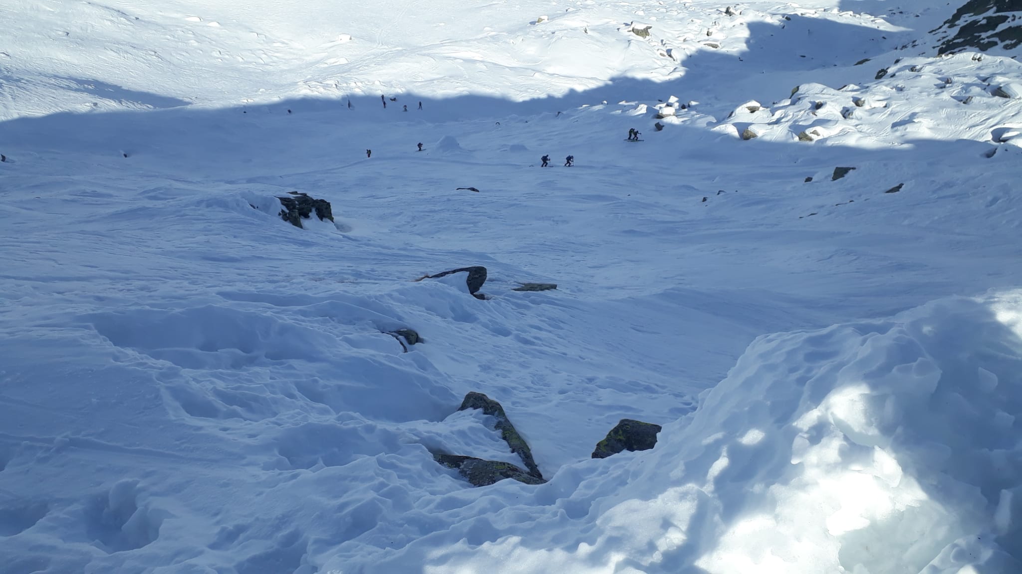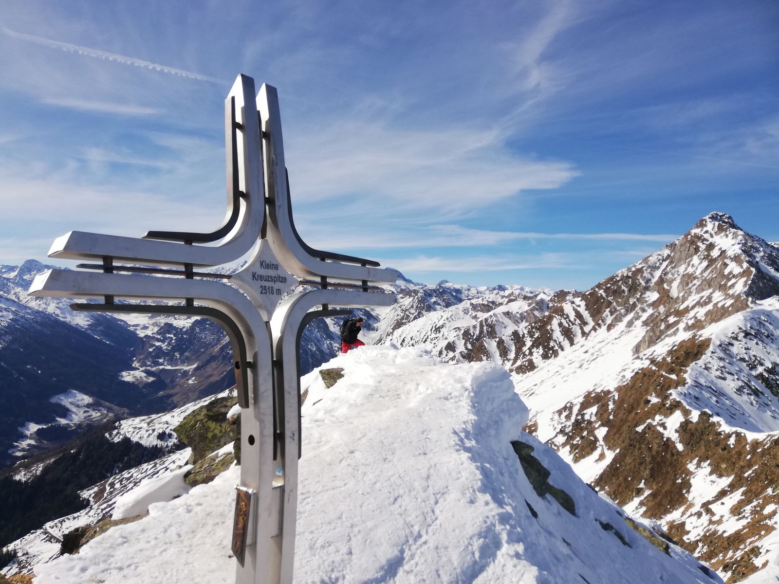 Heute vom Talende zunächst auf Forststraße, dann über Osthänge zur Klammalm und kurz nach dieser nach Süden abbiegen. In den Sattel südlich des Fladinger Berg hoch und in das Nachbartälchen wechseln und nach Süden zum Gipfel, zum Schluss ziemlich hart, Harscheisen zwar nicht zwingend, aber sinnvoll. In der Abfahrt oberster Gipfelhang ziemlich hart, dann aber bald griffiger Harsch, gut zu fahren. Unterhalb der Klammalm weich, an einzelnen Engstellen muss man um einige Felsen Slalom fahren. Auf der Forststraße einmal etwa 30m Ski tragen, vor dem zweiten aperen Stück kann man nach links auf den untersten Hang absteigen und diesen bis zum P abfahren. Insgesamt zwar wie überall wenig Schnee, aber gut zu fahren und empfehlenswert.