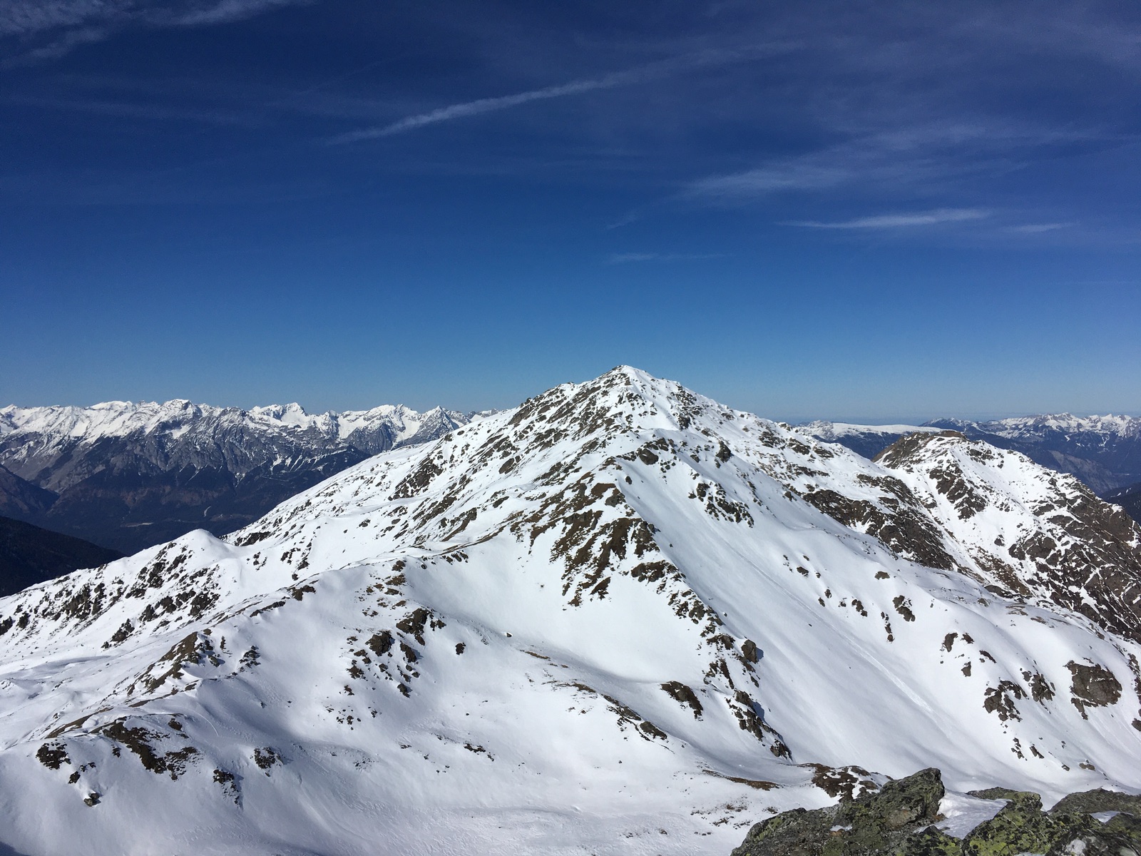 Blick von der Hippoldspitze zur Grafennspitze - schaut auf dem Foto aber nach mehr Schnee aus als in Realität: