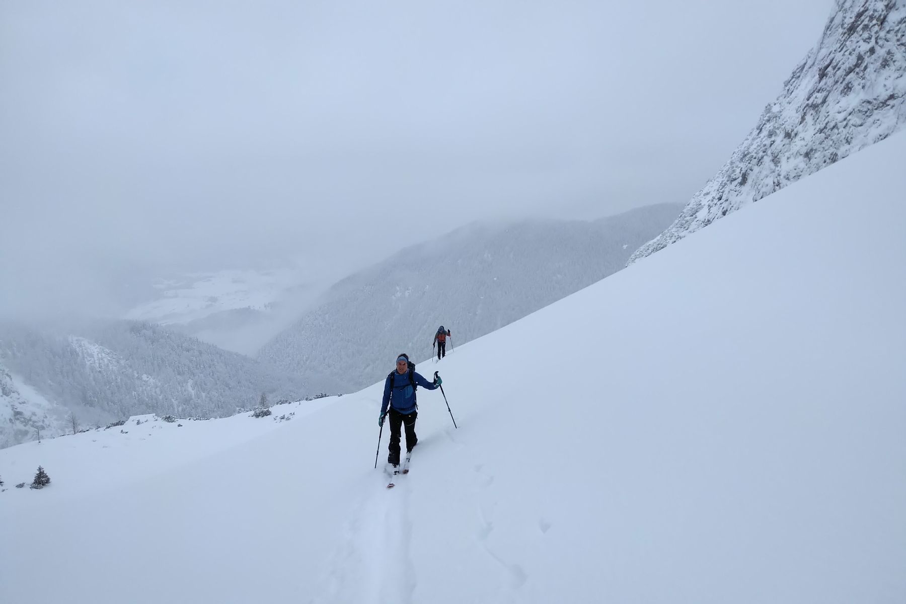 Unten noch etwas feuchter und leicht stollend am Fell, aber spätestens ab dem Bankerl guter Pulver, erst oberhalb von ca. 2000m windig und der Schnee etwas windgepresst.