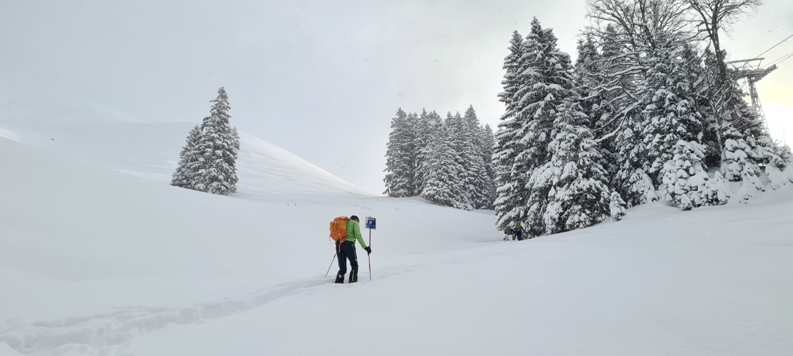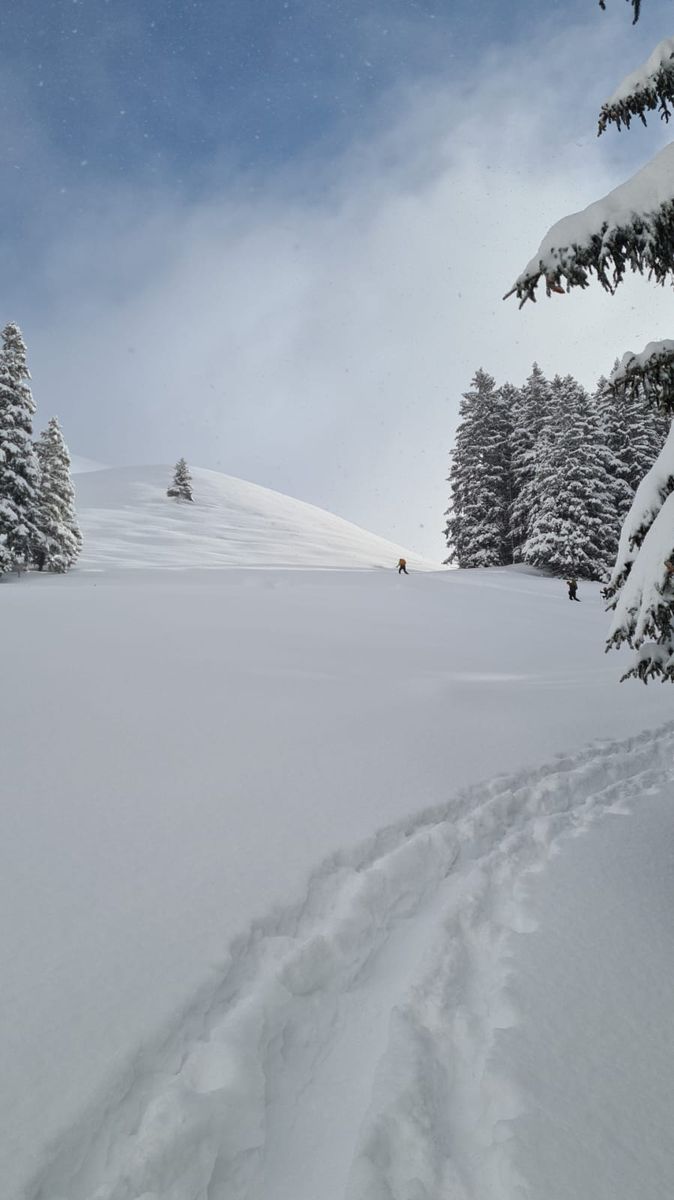 Daher bin ich im oberen Bereich auch genau an der Aufstiegsspur zurückgefahren, ab der Waldgrenze war die Sicht dann besser und die Abfahrt fantastisch.