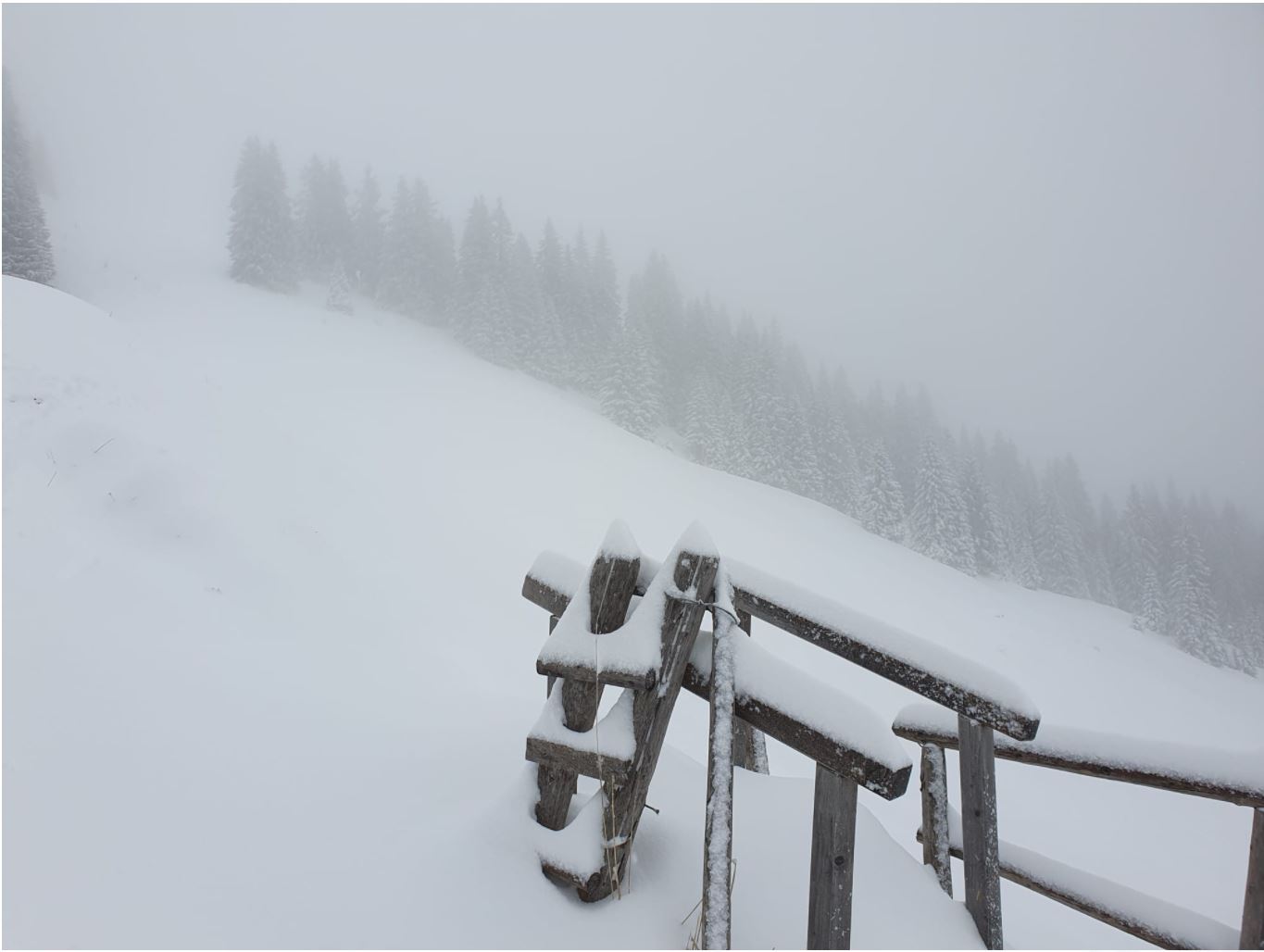 Sonntag: es hat nachts unten am PP ca. 30 - 40cm Neuschnee gegeben, oben deutlich mehr.