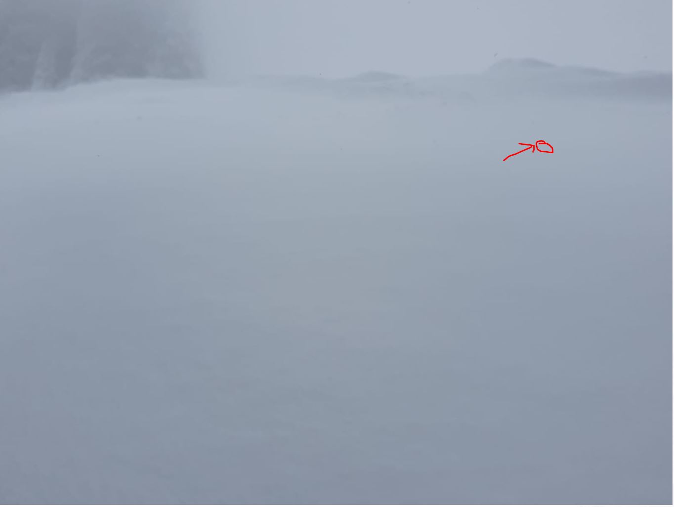 2: Wächte, roter Kreis zeigt auf eingeschneite Bank
