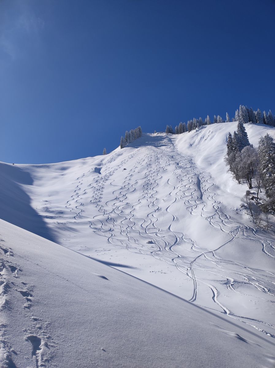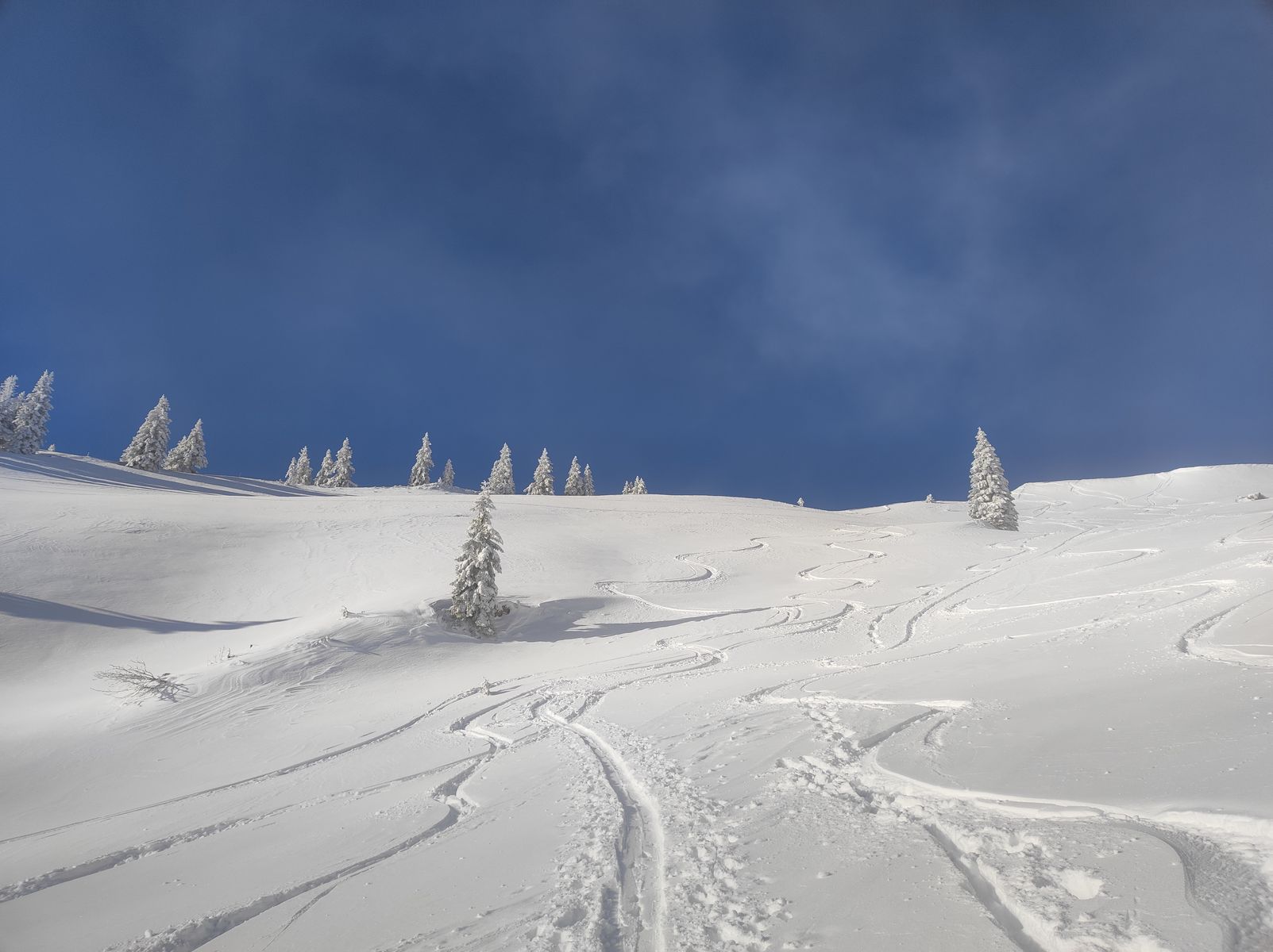 Lawinengefahr: Von Triebschnee sind nur einige Osthänge im direkten Kammbereich betroffen - erkennt man aber eh leicht.