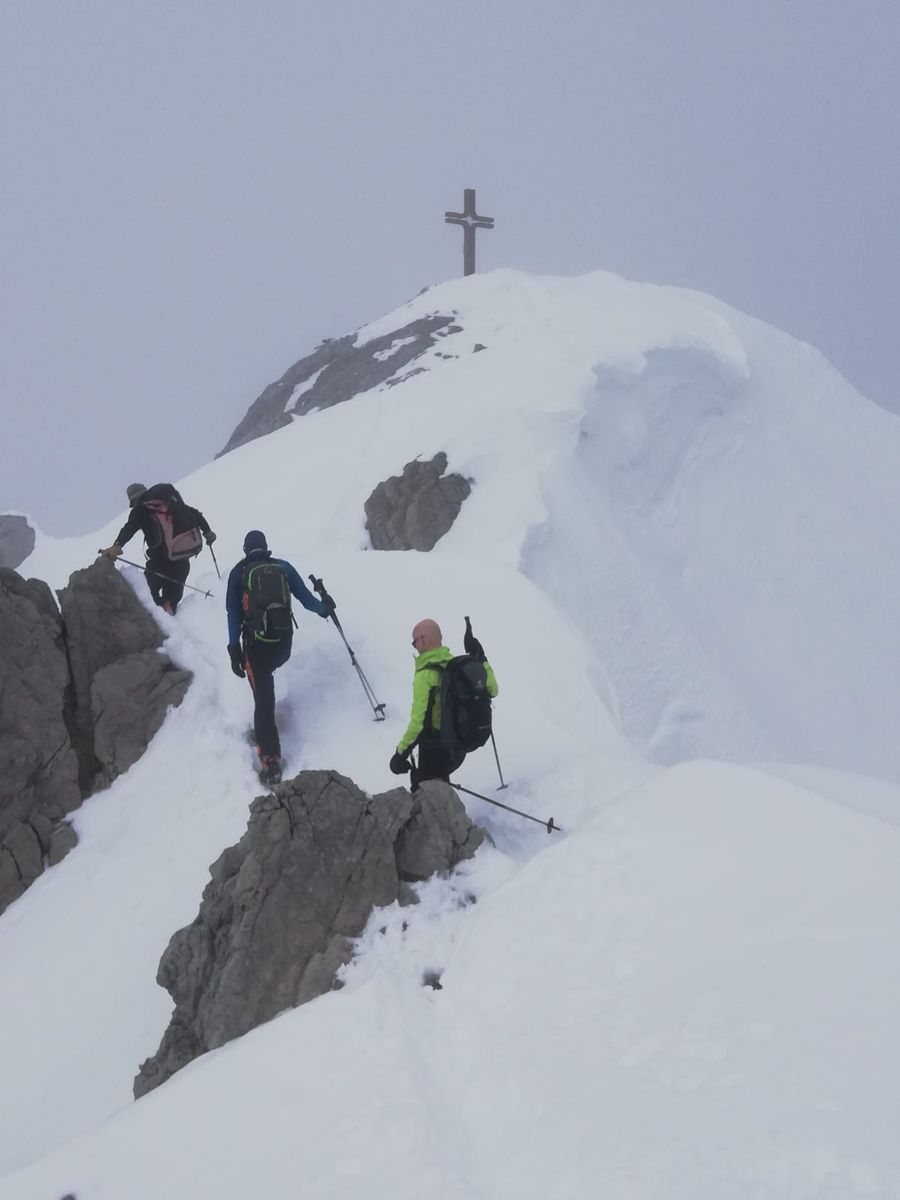Vom Parkplatz direkt an der Straße beim Abzweig nach Kelmen entlang des Sommerwegs zur Karschwelle. Danach durch das Kar genau nach Süden hoch bis zum Grat. Die letzten ca 20m zu Fuß durch eine Rinne. Danach nochmal mit Ski nach links (Ost) den Grat entlang. Zuletzt wenige Minuten zu Fuß zum Gipfel mit neuem Kreuz.