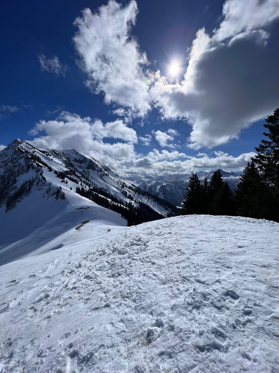 Die Qualität: Beim Aufstieg in der Sonne hatten wir noch den Eindruck, dass das heute eine nette Geschichte in feuchtem, aber gut fahrbarem Schnee wird. Kurz bevor wir aber den Gipfel erreicht haben, hat eine Wolke den Himmel getrübt und zusammen mit einem frischen Wind ist es schnell kalt geworden. Innerhalb kürzester Zeit hatte alles wieder einen Deckel.
