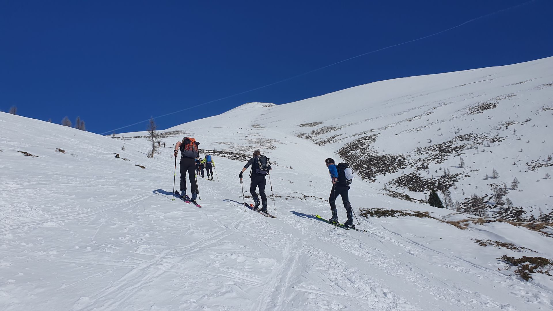 Am Samstag ging es dann vom Prebersee über die gutpräparierte Rodelbahn zur Preberhalterhütte und über den endlosen Südhang auf den Preber. Hier beste Bedingungen. Kein Bruchharsch, sonden top Altschnee, der sich super Schwingen lies. Achtung, für künftige Aspiranten , kommenden Sonntag am 12. März ist der Preberlauf. Da sollte man den Berg eher meiden. Ansonsten geht es noch lange,aber man ist halt nicht alleine.
