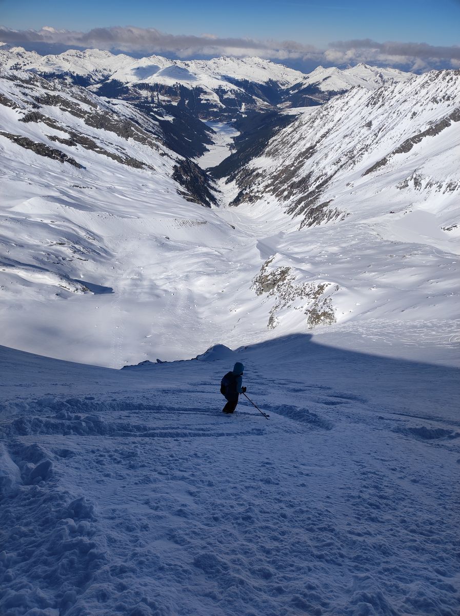 4: In der herrlich steilen Abfahrt: In real life viel steiler als auf dem Bild...