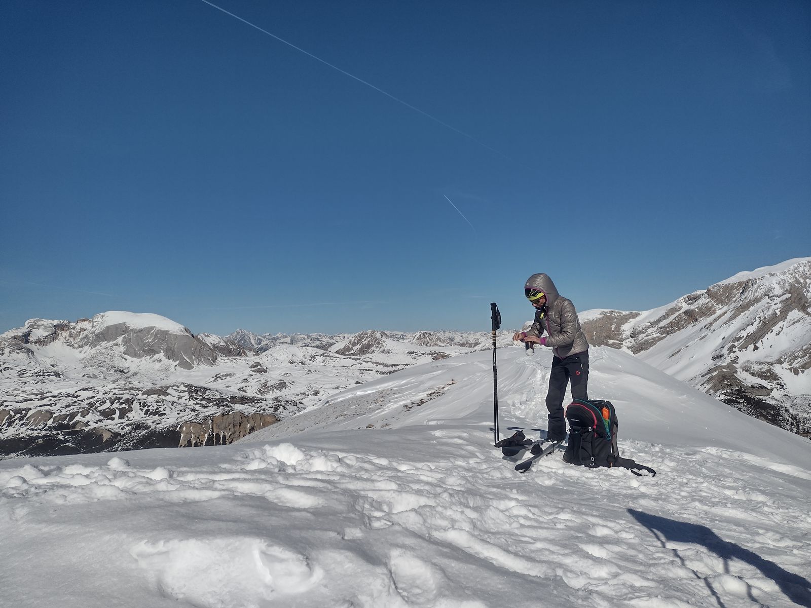 Die Querung war bei uns sehr hart und windgepresst, Harscheisen waren kein Luxus. Bei schlechter Lawinenlage ist die Querung auch nicht zu unterschätzen.