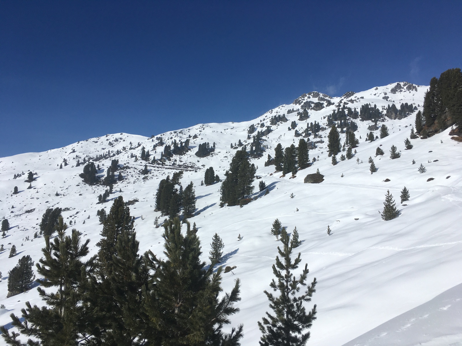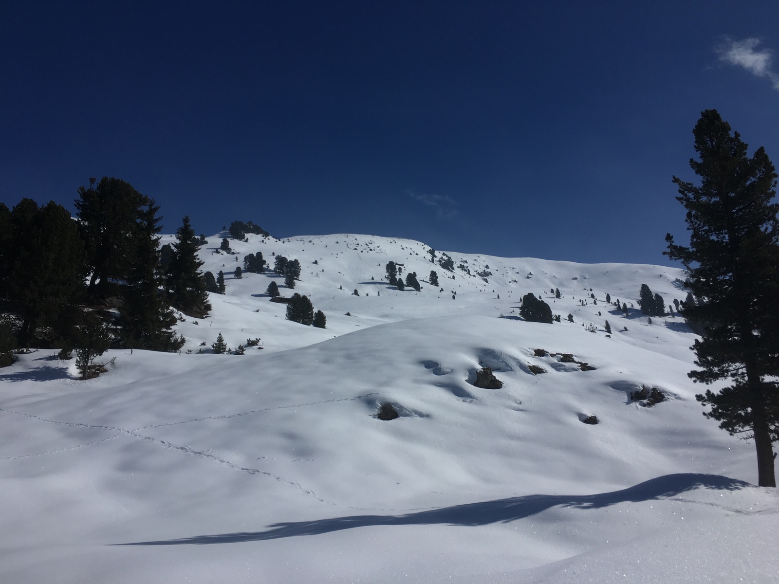 Abgesehen von dem (erwarteten) Skitragen am Anfang über lange Forststraßen gab es ordentliche Verhältnisse bei überraschend gutem Wetter. Natürlich hat es auch hier bzw. gerade hier im Gebiet wenig Schnee. Einen weiteren Anstieg auf die den Rifflerkogel haben wir uns unter anderem auch deshalb gespart (sah oben steinig aus). Anzumerken ist noch, dass die Tour - jedenfalls auf unserer Route - eher etwas für Freunde von Skiwanderungen ist als für die abfahrtsorientierte Fraktion.