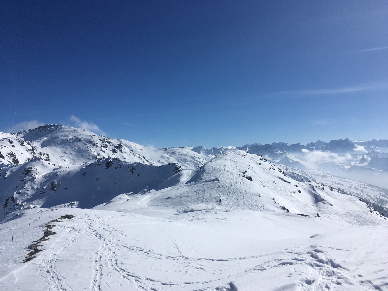 Gefahrenbewertung mäßig v.a. auch wegen der im Skigebiet am Nachmittag insbesondere auf der Talabfahrt anzutreffenden Personen: Selten erlebt man einen derart hohen Anteil an völlig überforderten Skifahrern auf der in der Tat steilen und sehr buckeligen Talabfahrt. Warum diejenigen aber nicht einfach mit der Gondel hinunterfahren, statt sich selbst und andere zu gefährden, bleibt mir unklar.