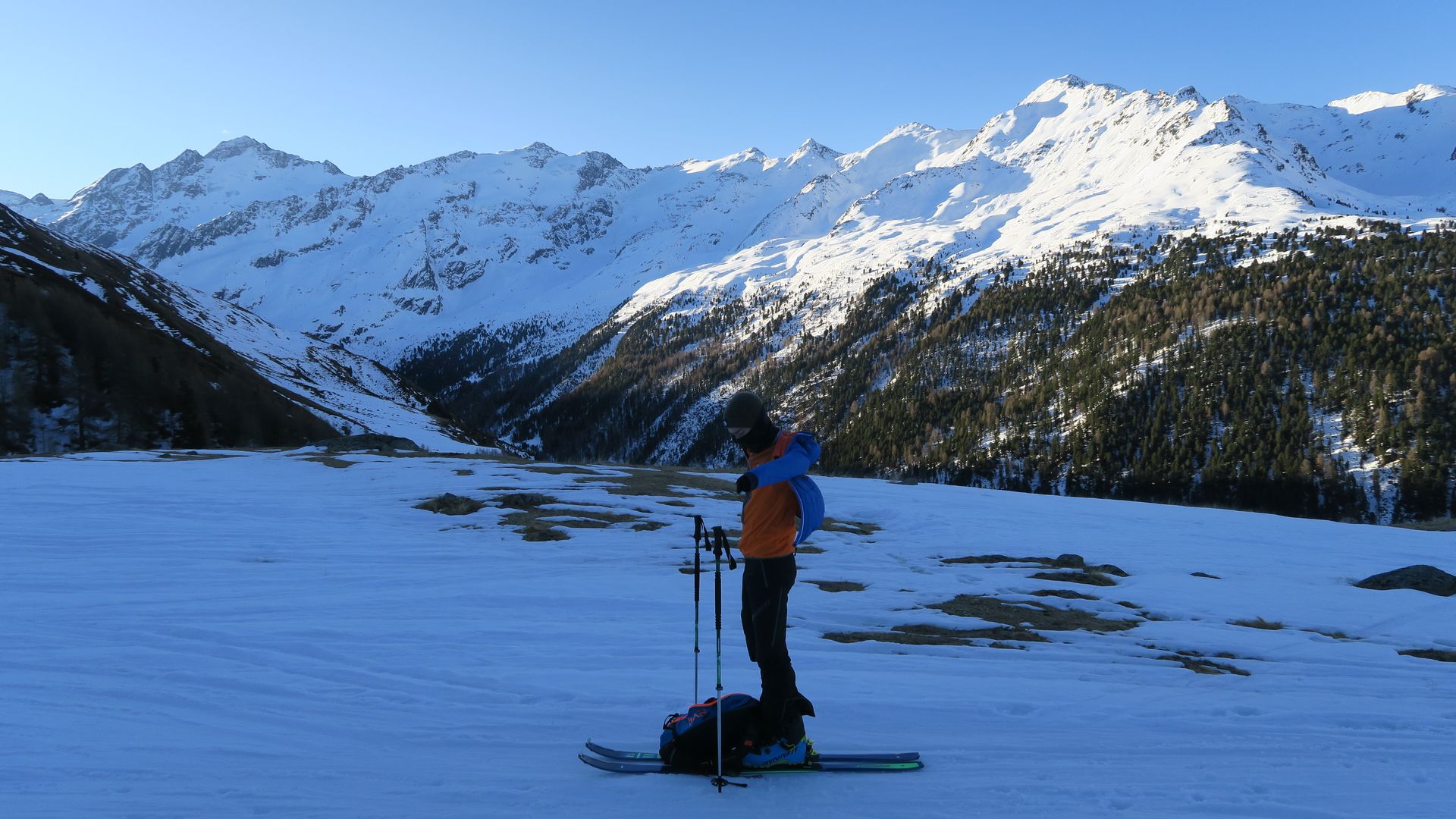 Die guten Nachricht: Ca. 20 Minuten haben wir getragen, ansonsten ausreichend Schnee für Aufstieg und Abfahrt. Das ist für eine sonnseitige Tour in so einem schneearmen Winter nicht schlecht!