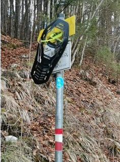 auf dem Runterweg vom Duerrenbachjoch rechten Schneeschuh gefunden- hängt an der Abzweigung in Fall