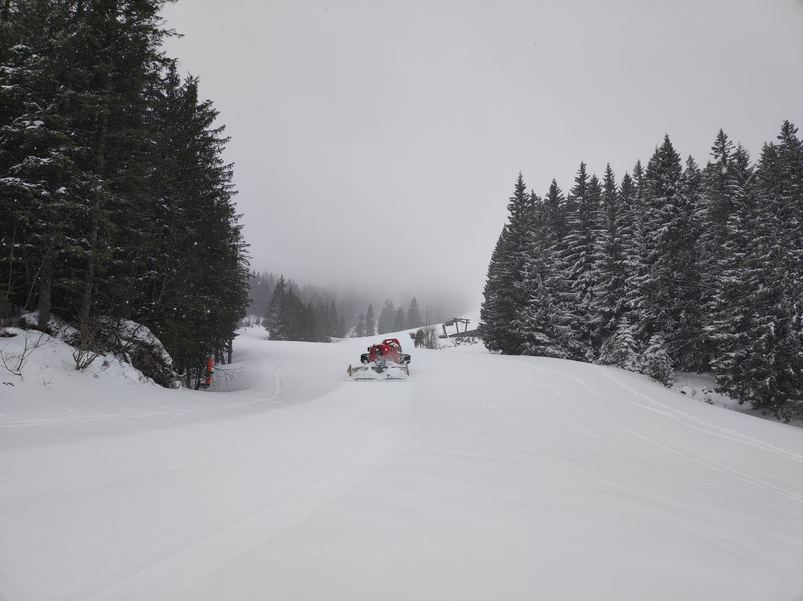 Sonstiges: Die Skigebiets-Leut sind gerade am Abbauen und dazu mit der Pistenraupe unterwegs. Sehr freundlicherweise zieht die Raupe auch wieder ab, sodass die Stümpflingabfahrt quasi präpariert ist. Ob die Pisten noch aufgebrochen werden oder (hoffentlich) nicht, weiß ich aber nicht. Am besten schaut man sich die Webcam "Abfahrt Stümpfling" vorher an - da sieht man das gut.