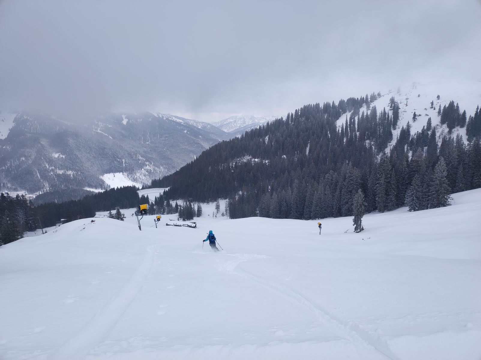 Da das Skigebiet gestern schon zugemacht hat (warum?) und ich davon ausging, dass im freien Gelände großteils keine Unterlage mehr da ist, bin gemütlich durchs Gebiet getourt. Super Verhältnisse: 20-30cm Pulver auf den Pisten. Temperaturen zwischen 0 und -5 Grad, passable Sicht. Ich hab alle Abfahrten mehrfach gemacht und nur auf Grünsee verzichtet, da es dort dann doch zu neblig war und ich wollte ja nicht den Manuel Neuer machen... Später kam dann auch noch Claudia dazu. Ein feiner Tag!