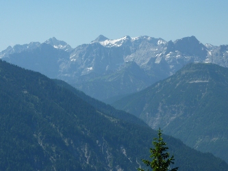 Danach entlang der Markierungen auf einem Waldsteig, fast immer im Schatten, bis zum Staffel-Alm-Hochleger. Ab dort in der Sonne auf felsdurchsetztem Steig zum Gipfel.