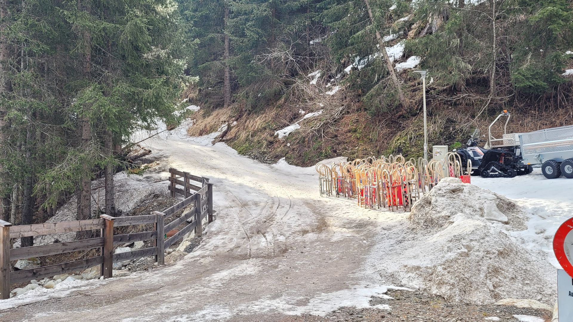 Bild 1: Am Start - Dank Rodelbahn mit Ski, beim Abfahren einige Stunden später aber bereits einige apere Stellen.