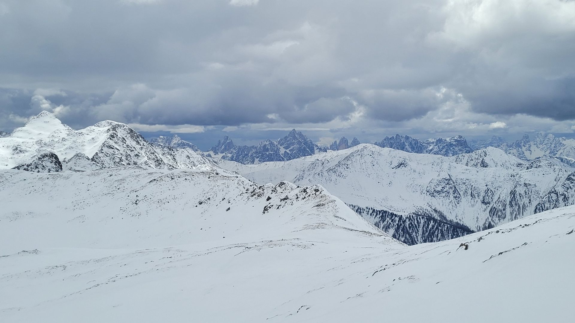 Bild 3: Dolomitenblick vom Kamm, aber auch sauber verblasen und wenig Schnee