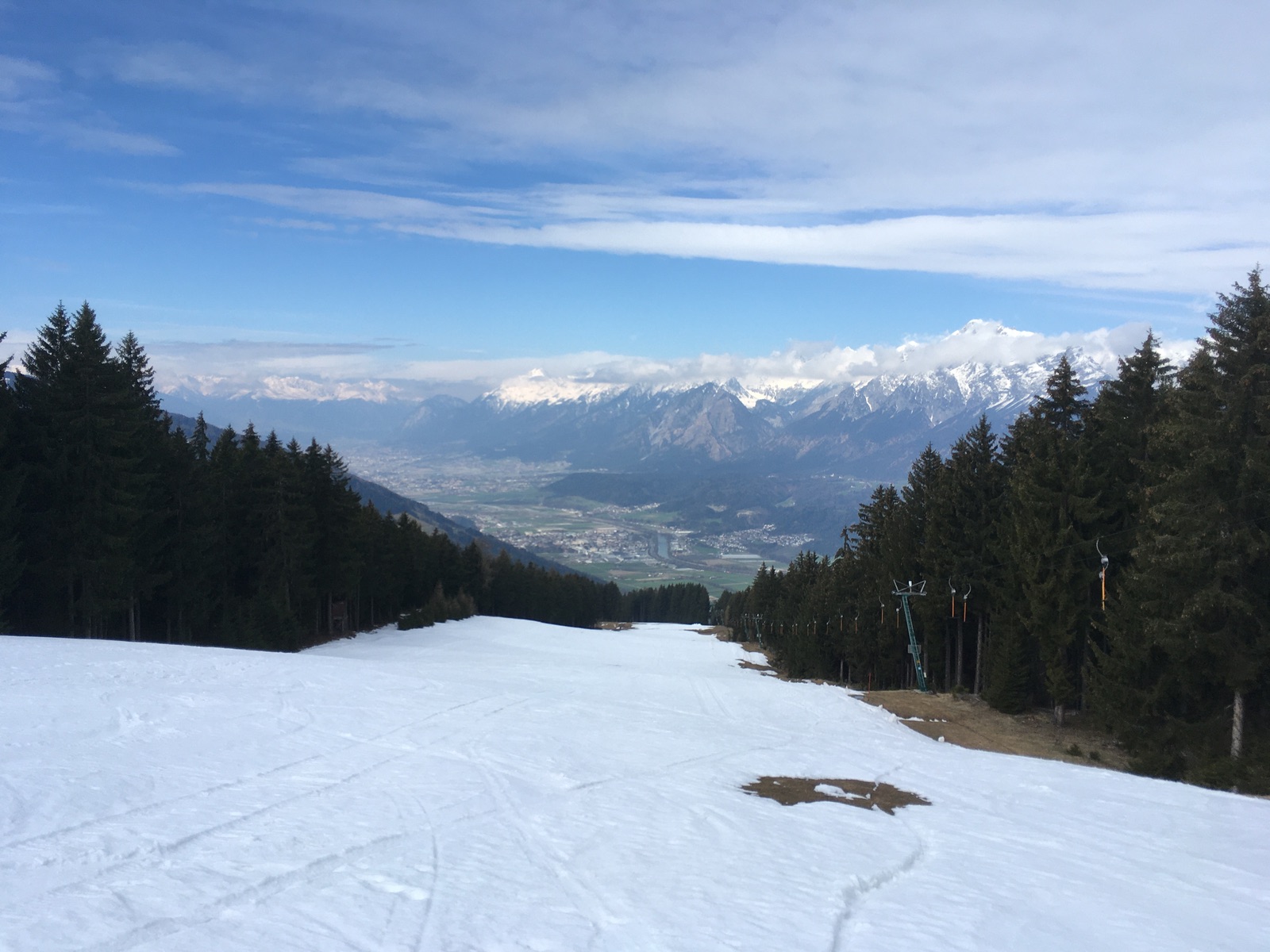 Der Almweg zurück zur Hausstatt hatte gestern nur zwei kurze apere Stellen, auch das dürfte rasch mehr werden. Und dann noch kurz zurück zur Piste tragen.