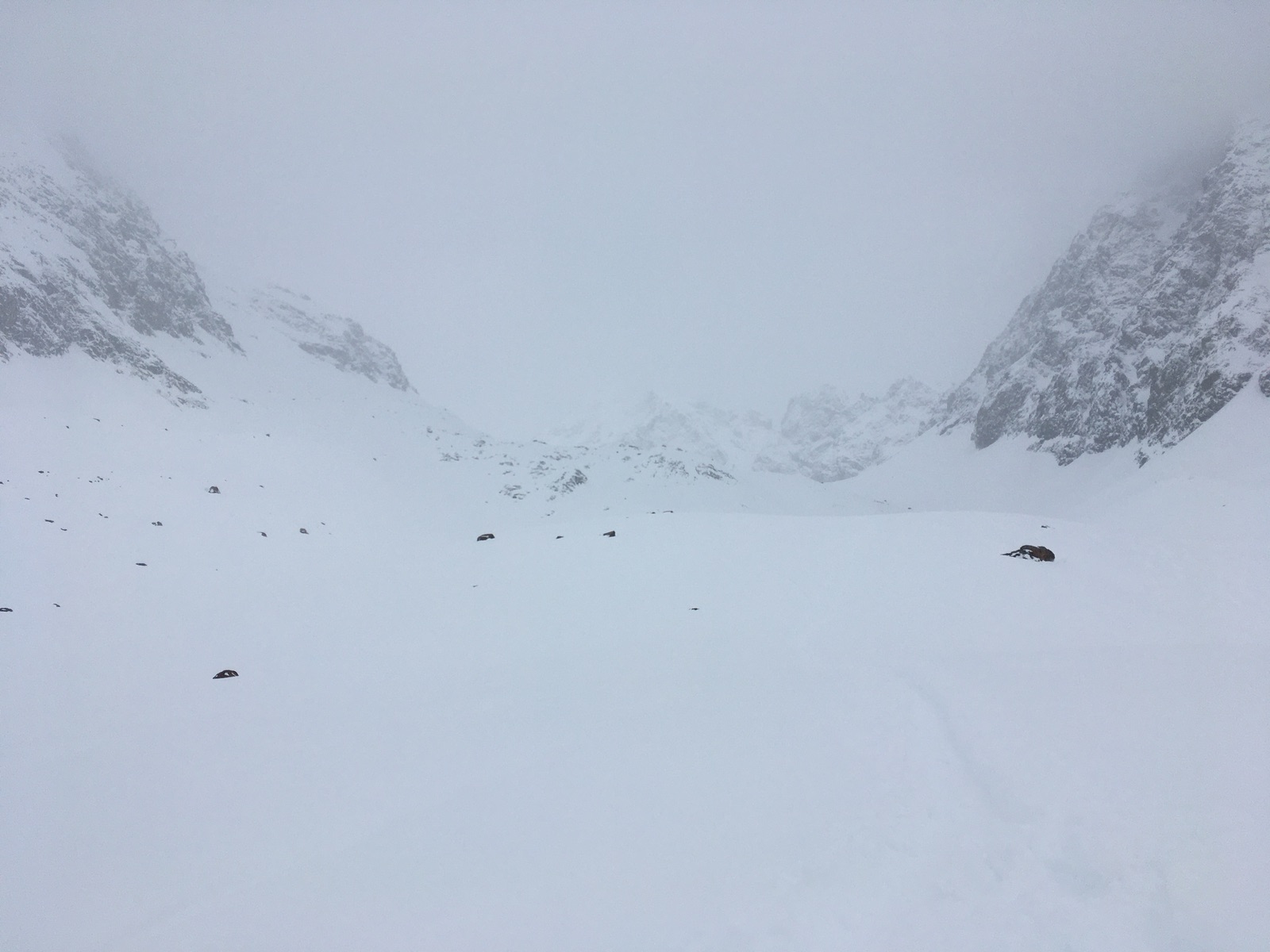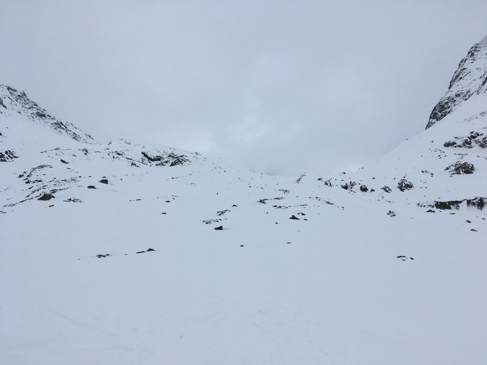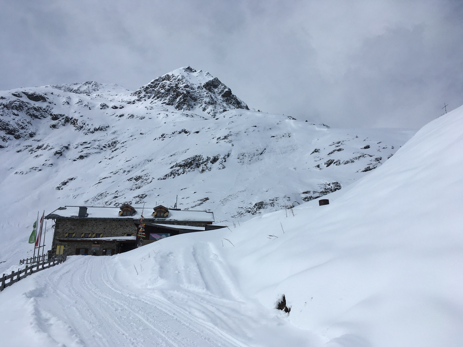 Eigentlich wollte ich ja nur bis zur Hütte gehen, aber dann erwiesen sich die Standardtouren im Gebiet als bereits angespurt und nach Kartenstudium kam ich zu dem Schluss, dass man ins Schrankar bei richtiger Spuranlage mit Hängen meistens unter 30 Grad, maximal bis 35 Grad gelangen kann. Also ging es noch weiter, zunächst flach durch die Sulze, dann abzweigend Richtung Schrankar. Ab ca. 13.30 Uhr trat aber eine rasche Wetter- und v.a. Sichtverschlechterung ein, die mich zum Umdrehen veranlasste - der Schrankarkogel wäre nur das Endziel der Route, das heute aber ohnehin für mich nicht realistisch war (man muss halt nur in das Feld oben etwas eintragen). Zuvor war es überraschend sonnig und v.a. sehr warm (insbesondere nach den letzten sehr kalten Tagen) gewesen. Mit Vorsicht und etwas Glück habe ich in der Abfahrt dann keinen Stein erwischt, im Gebiet sind aber definitiv neue Skier nicht ratsam. Die Einkehr in der Amberger Hütte ist sehr zu empfehlen. Die Skiabfahrt von der Hütte läuft, einige Flachstücke und ganz kleine Gegenanstiege sind aber dabei - ca. 20 - 30 min.
