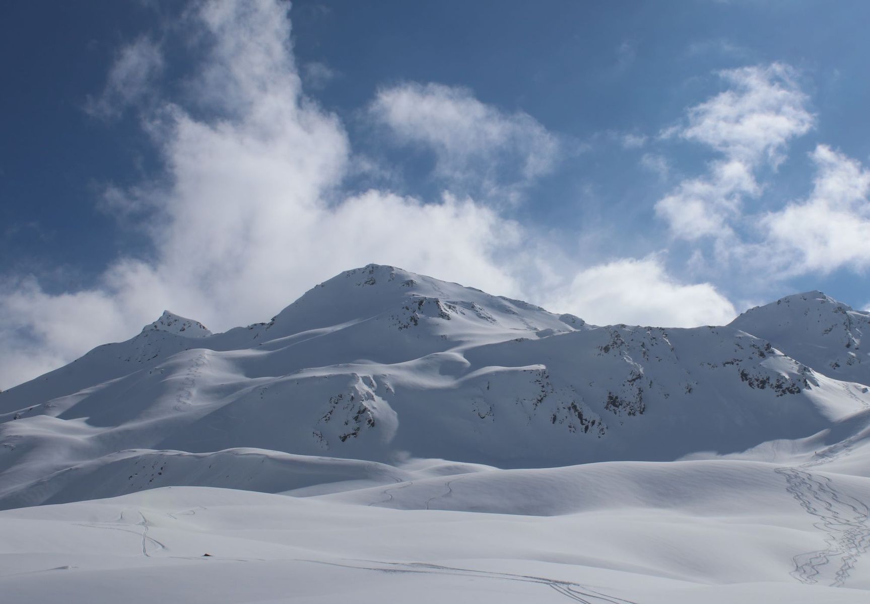 Derzeit hat es im Sellrain so viel Schnee wie den gesamten Winter nicht. Man kann in St, Sigmund die Ski anlegen. Spuren waren wie erwartet am Hüttengipfel Samerschlag vorhanden. Bei der Abfahrt zur Hütte oben gesetzter Pulver, weiter unten.
