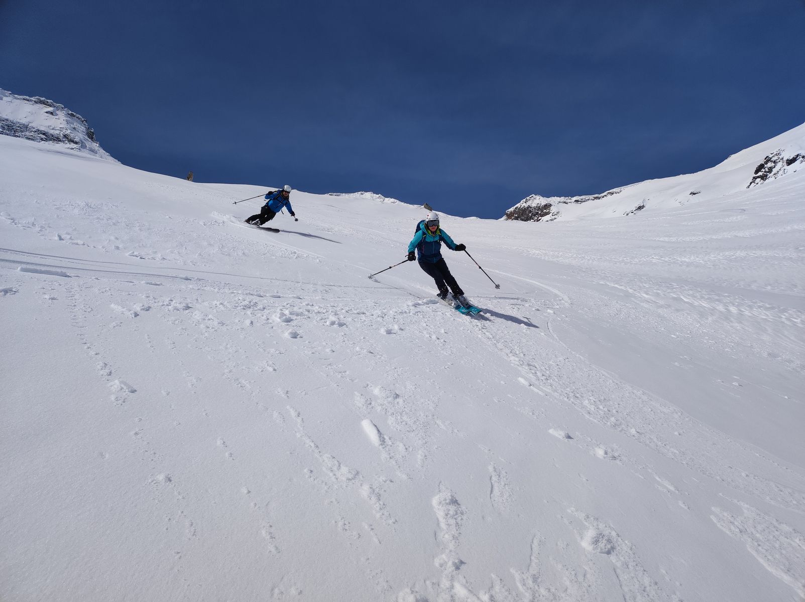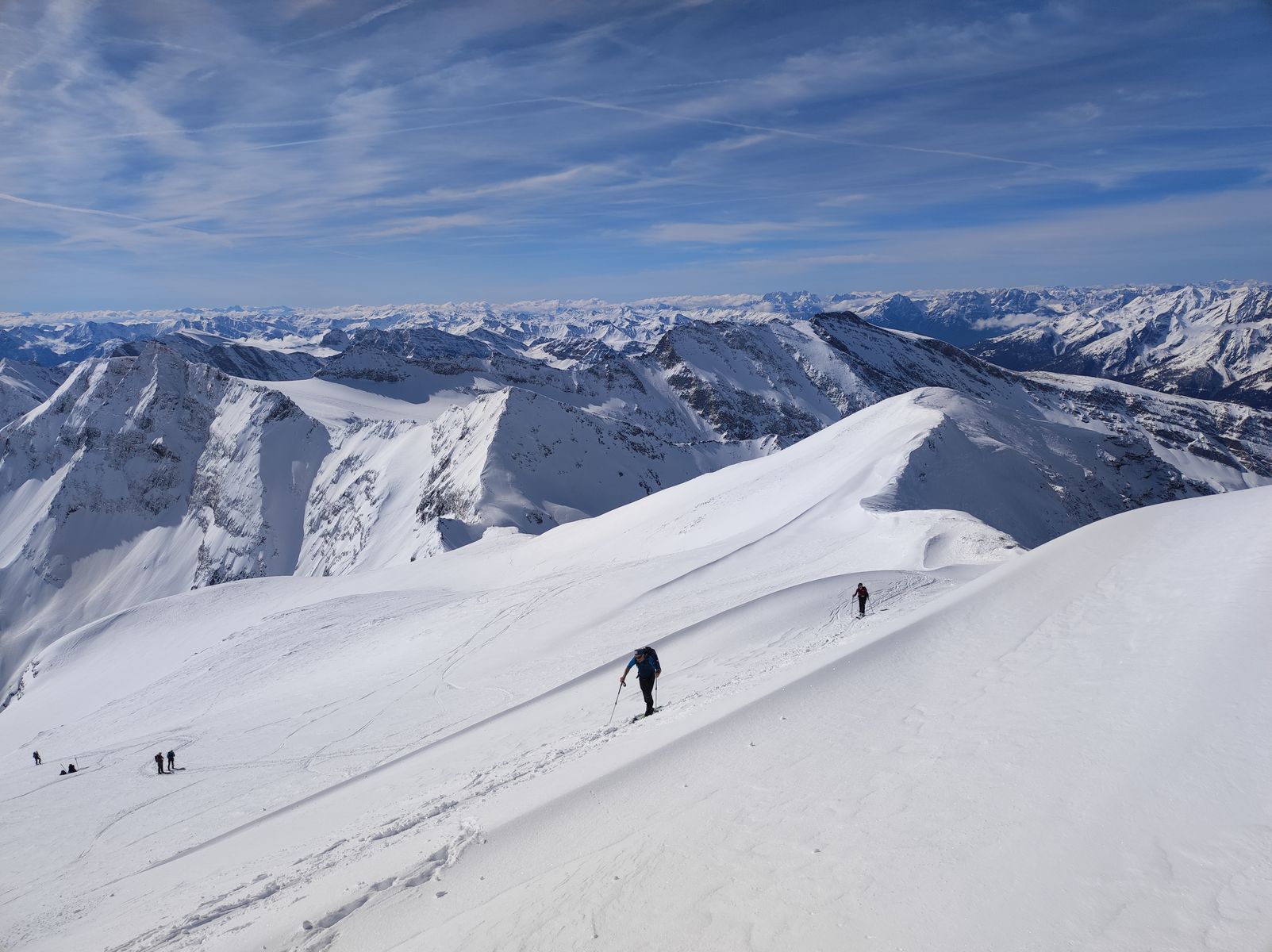 Wir sind auf der üblichen Route zum Hocharn. Sehr gute Verhältnisse im Aufstieg - keine Harscheisen nötig und auch die Abfahrt war einfach Klasse: Am Gletscher(rest) Pulver und unterhalb Firn, der je nach Feinexposition aber auch schon in Sulz übergehen konnte.