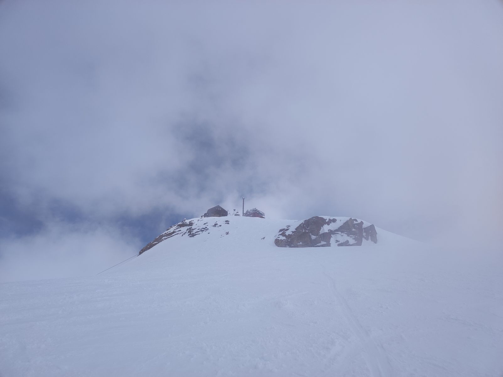 1-4: In dichtem Nebel steigen wir bei einsetzendem Niederschlag empor. Lasst euch von dem blauen Himmel nicht täuschen! 😉