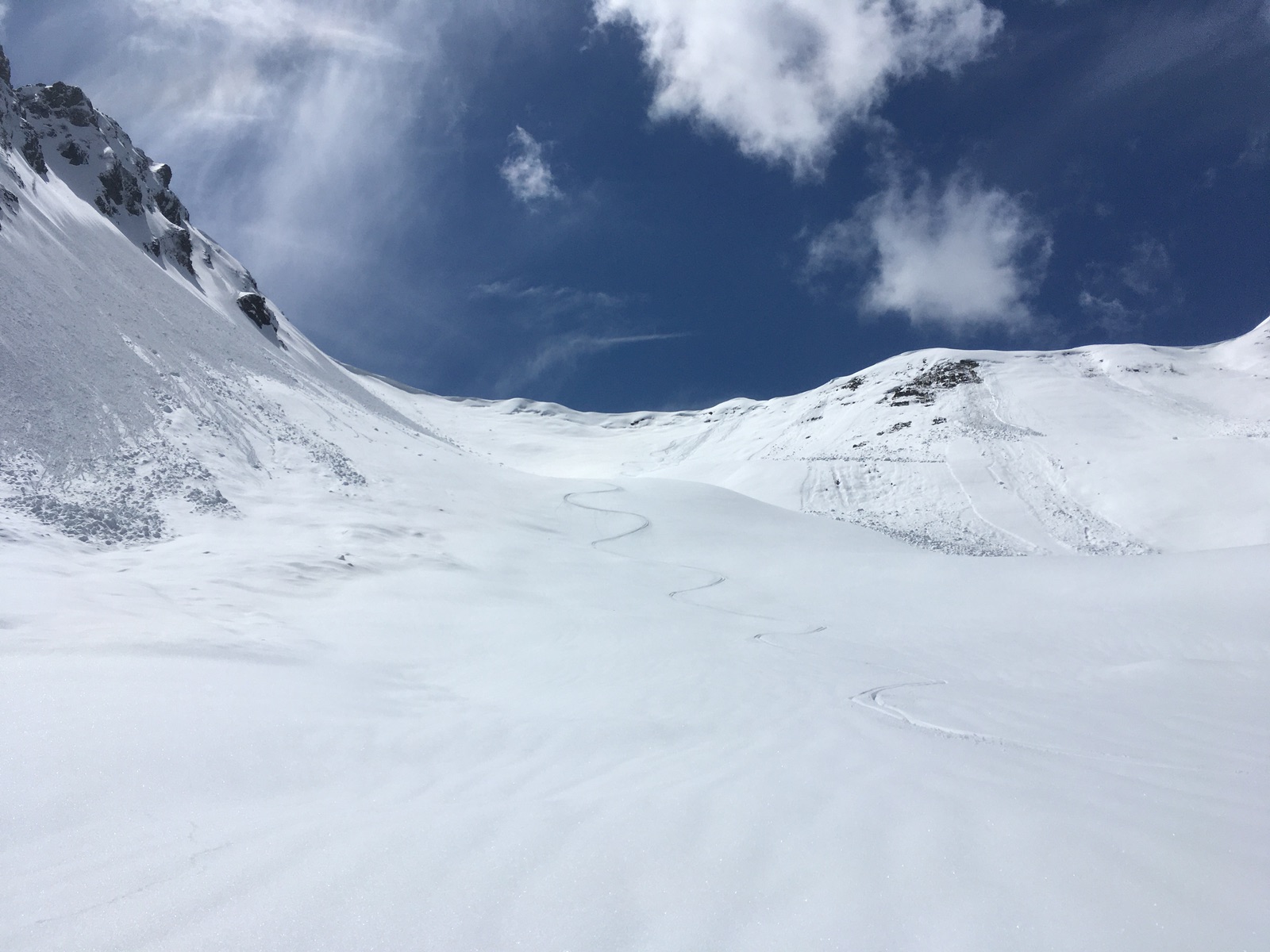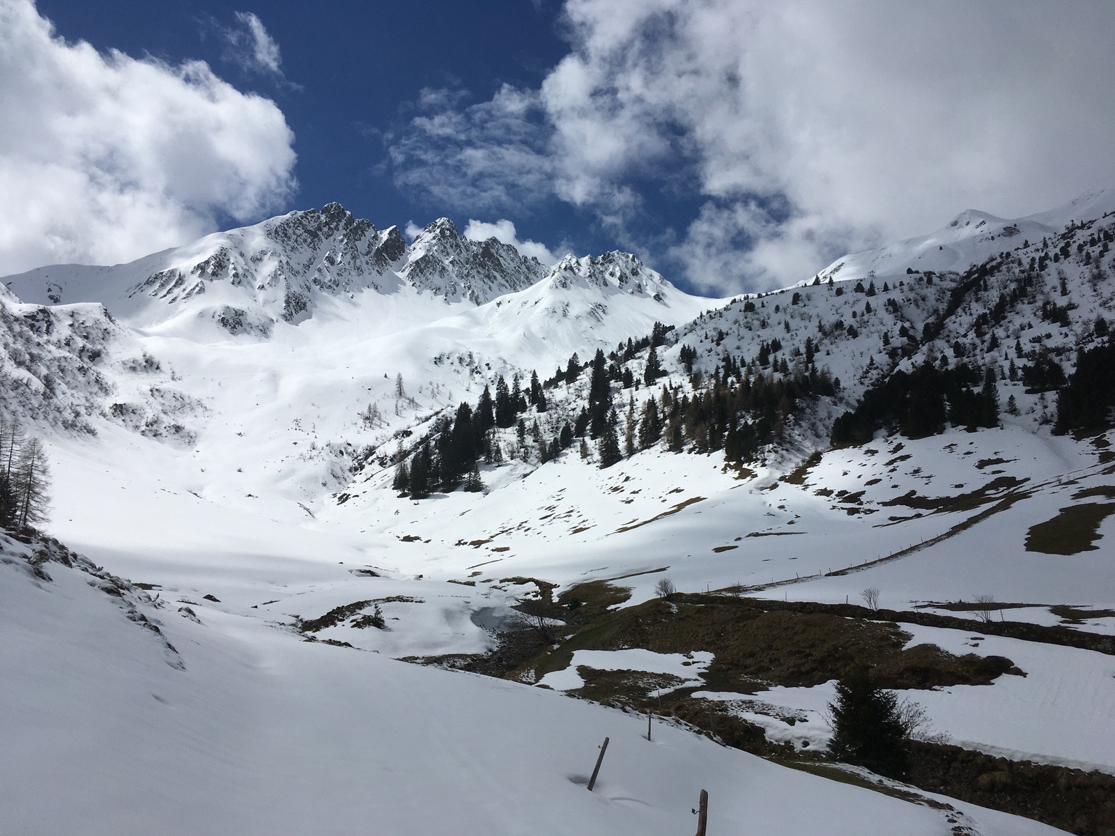 Da geht es jetzt hoch - ich bin ganz rechts aufgestiegen, im Talschluss aber wohl besser bei der derzeitigen Schneelage: