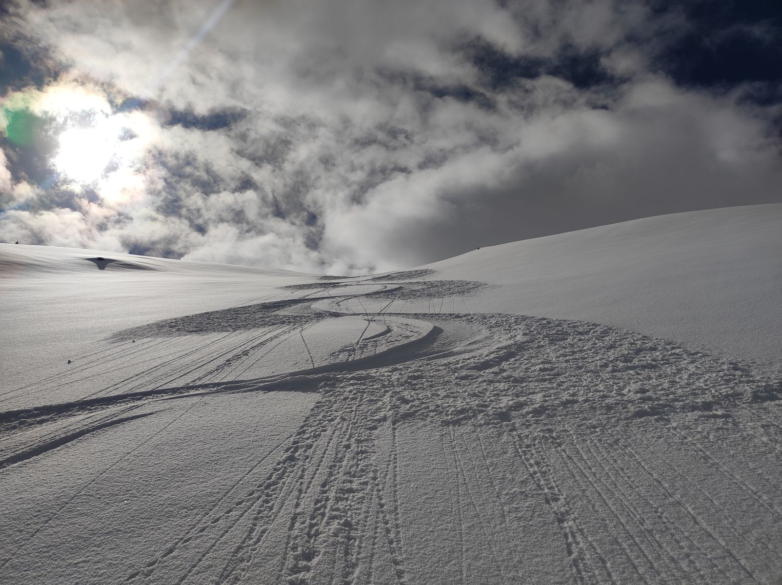 2: Gute Schneelage im Hang vor dem Skidepot