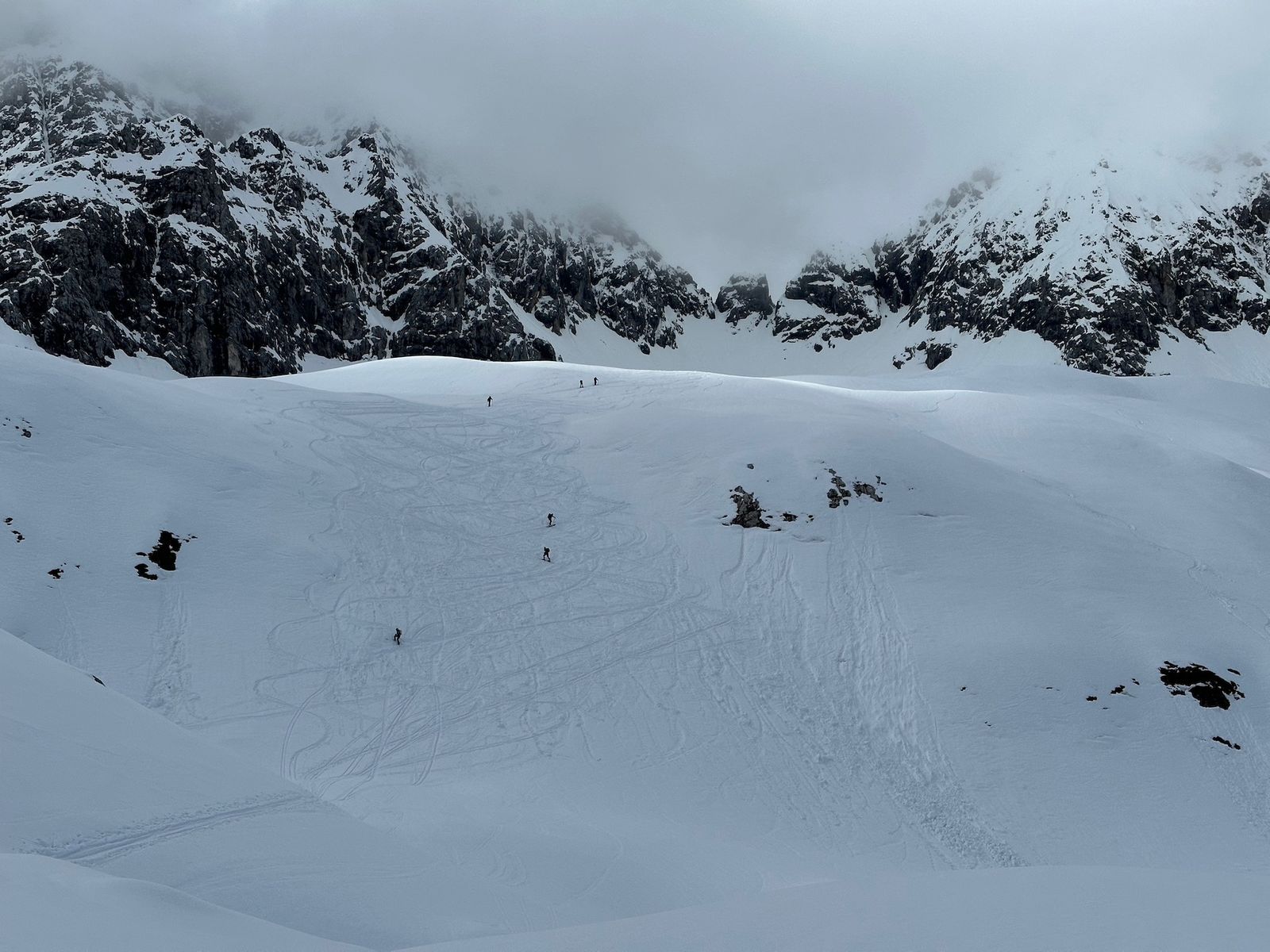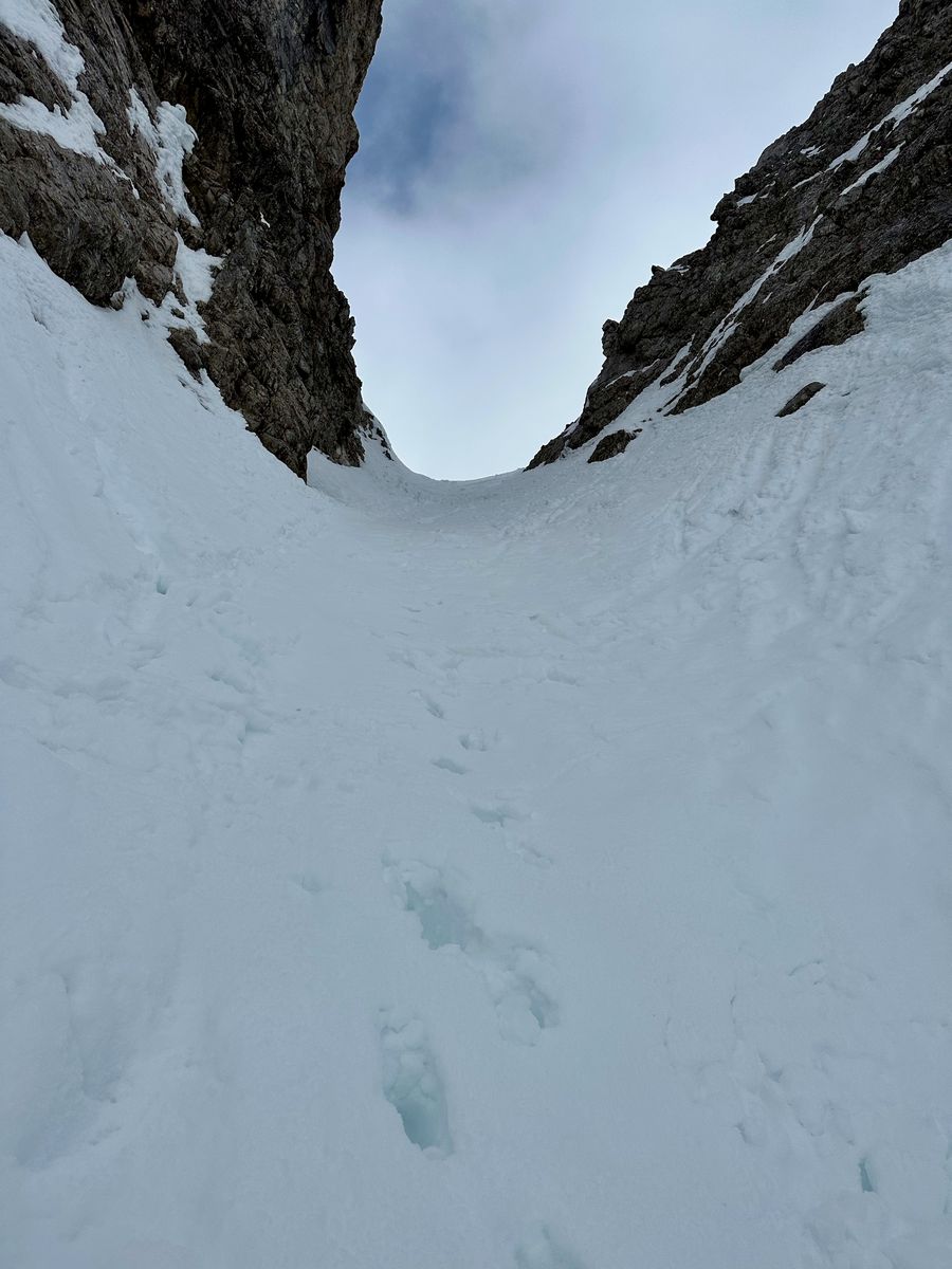 Wir starten um 6:30 in der Eng, früh aufgrund warmem Wetter und Nassschneeproblematik.