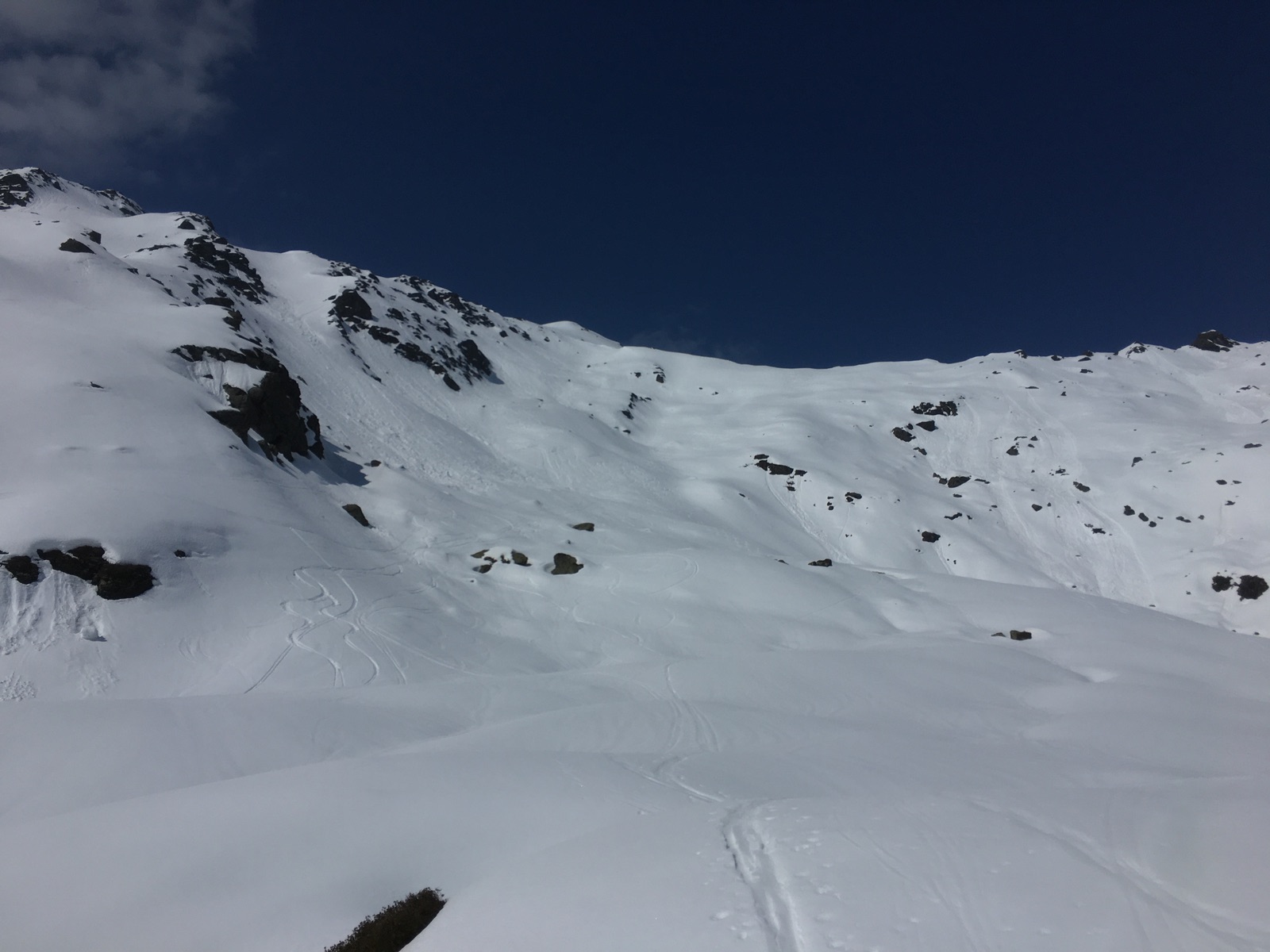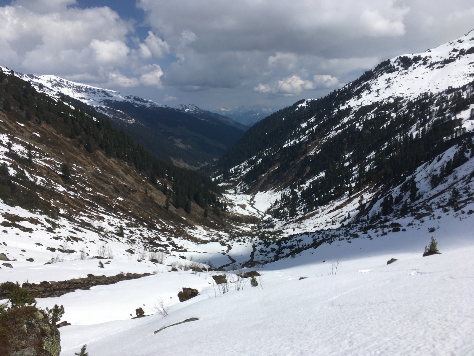 Zufahrt geht bis zur Tiefentalalm (Mautstraße 5 Euro). Ab da lohnt es sich nicht, die Skier an den Rucksack zu binden und Zustiegsschuhe zu verwenden. Es sieht zwar recht aper aus, aber heute begann schon nach 5 min der Schnee - also wieder Materialwechsel. Bis zur Oberkaralm ist es aber ein Wechsel von aper und Schnee, bei der Wärme wohl bald weitgehend aper. Die durchgehende Schneedecke beginnt kurz hinter der Oberkaseralm. Schon am Morgen war der Schnee aber nicht wirklich tragend, drei mir entgegenkommende Tourengeher, die deutlich früher dran waren, hatten wohl auch keinen guten Schnee. Abfahrt um kurz vor 12 Uhr dennoch zu spät. Es löst sich auch leicht oberflächlich Schnee und wird zu beeindruckenden Nassschneerutschen. Erstaunlicherweise war die Abfahrt um so besser, je tiefer kam (und ganz oben am Gipfel auch gut).