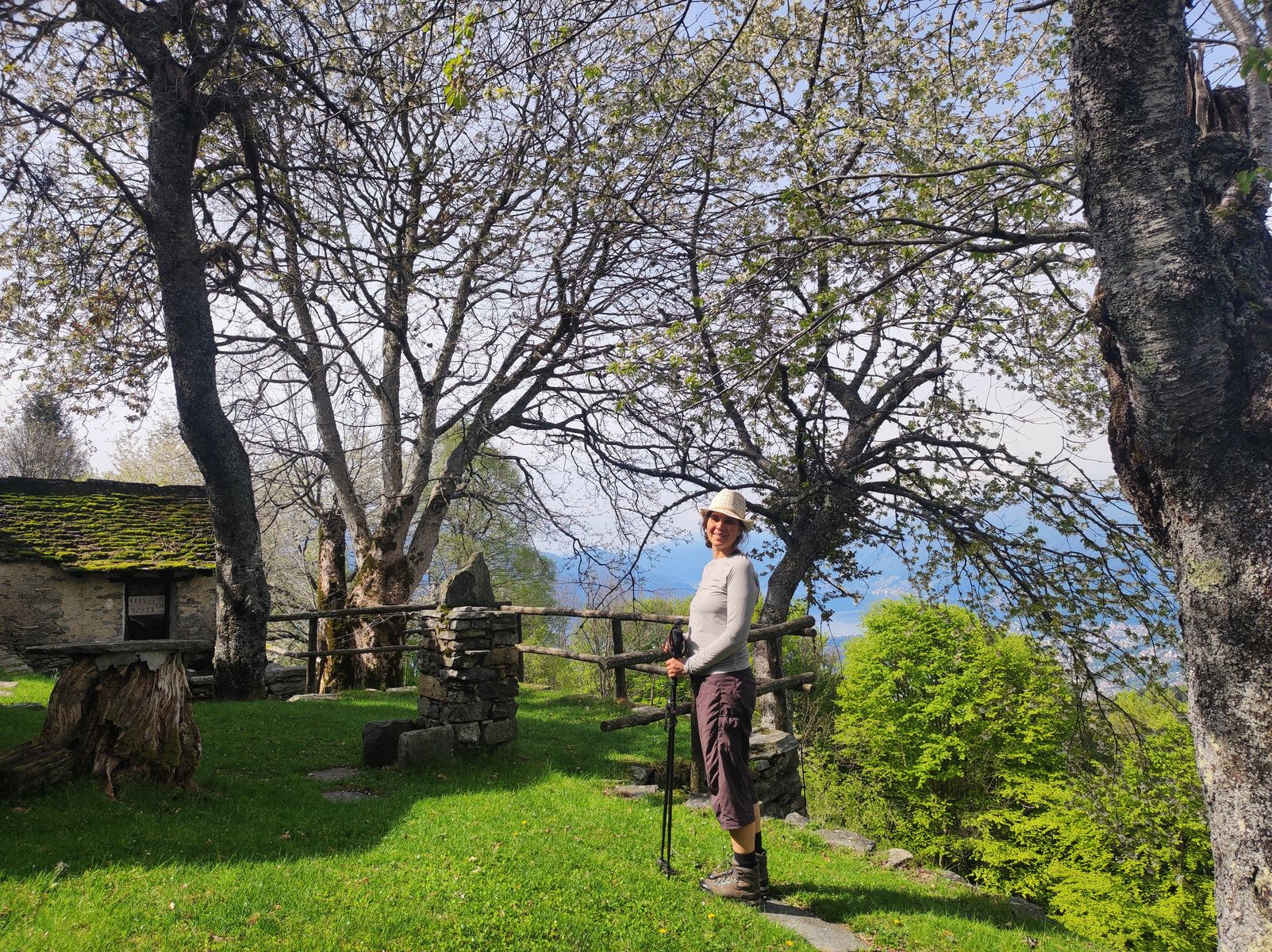 Alternativer Ausgangspunkt: Curiglia (670 Meter) oder schon das noch tiefer gelegene Dumenza. Vor dem Rifugio Campiglio (1157m) als PP kann ich nur warnen! Wir hatten das Glück, dass zurzeit noch fast nichts los ist und wir somit kurz vor dem Rifugio am Straßenrand parken konnten (max für 10 Autos Platz, kostenlos). Das Rifugio selbst hat auch einen PP, aber der ist nur für Gäste und auch sehr klein. Ich kann mir vorstellen, was für ein Chaos im Sommer zu italienischen Ferienzeit auf der steilen Zufahrtsstraße herrschen muss, die zu schmal ist, um deren Rand zuzuparken... Und wenden kann man auch nur sehr sehr schlecht...