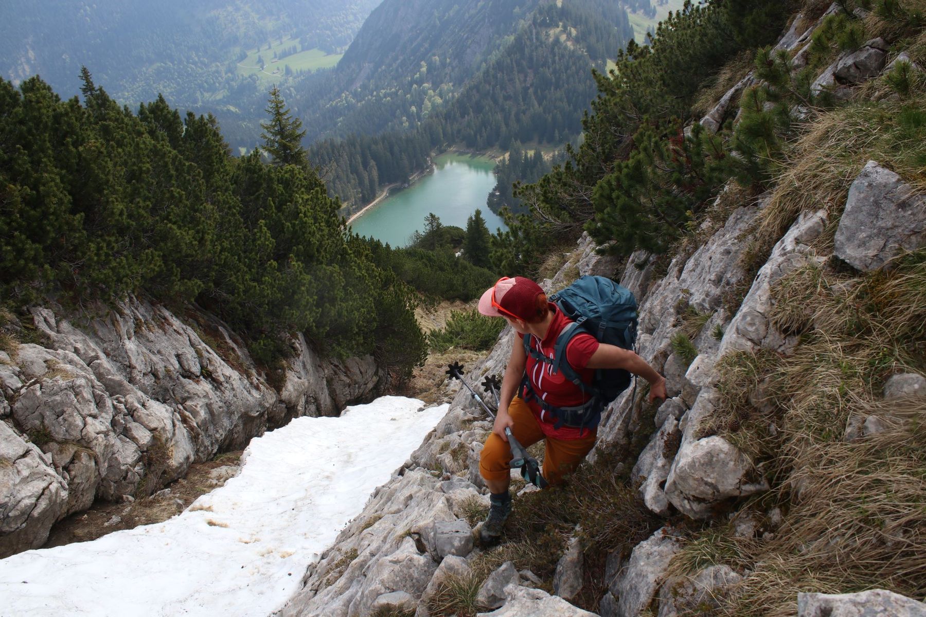 Im oberen Teil der Schnittlauchrinne (Anstieg Ruchenköpfe) liegt auch noch Schnee, den man aber umgehen, bzw. umklettern kann.