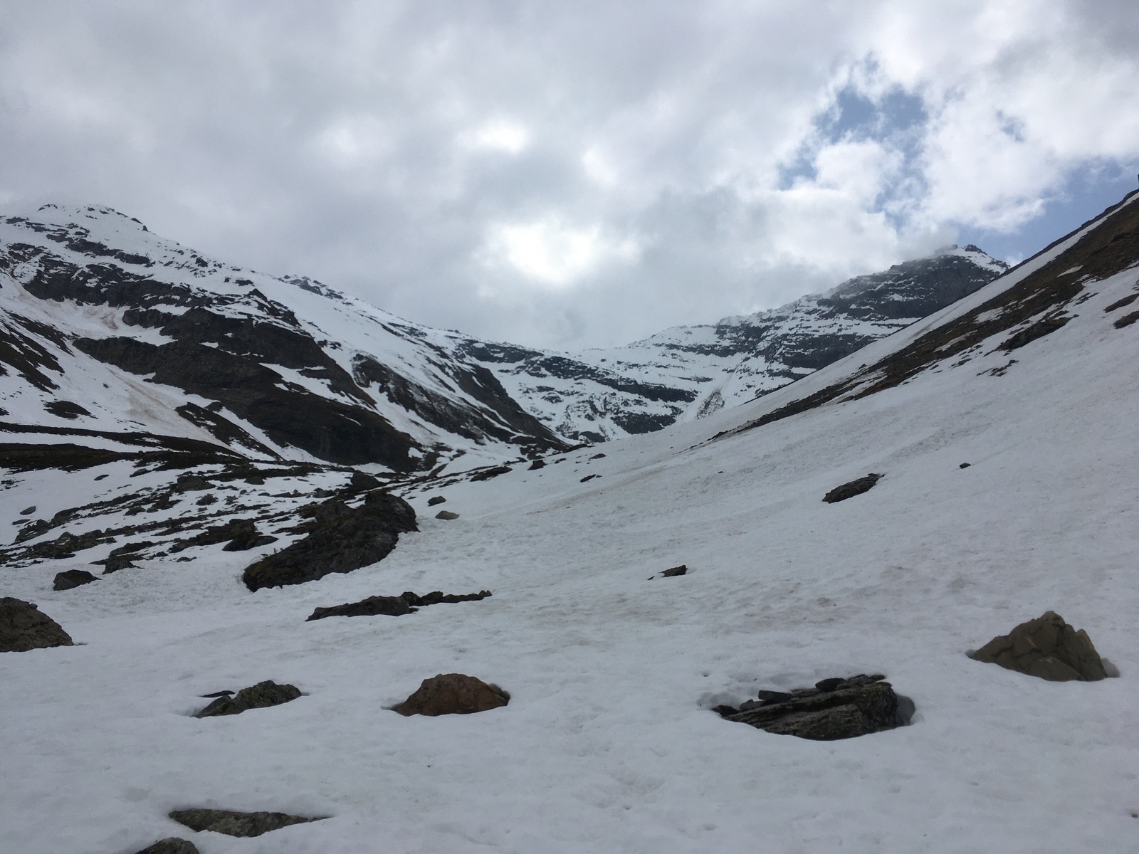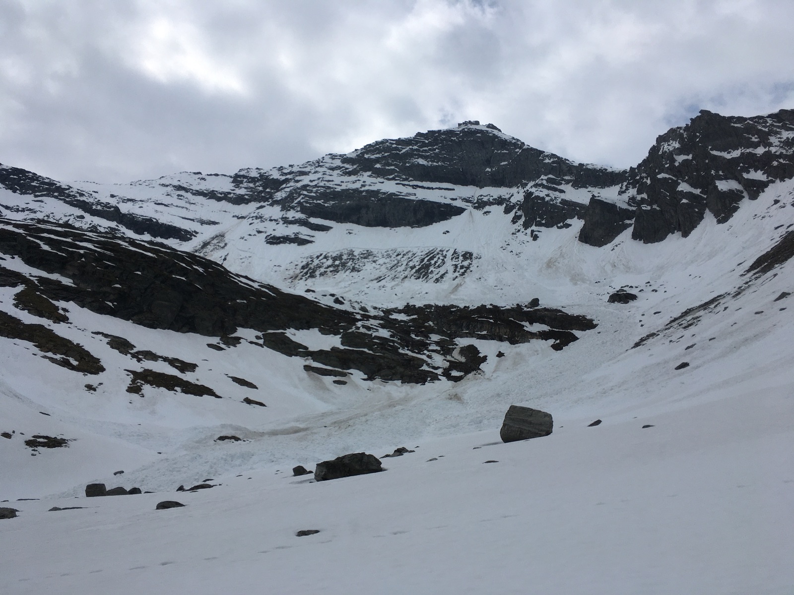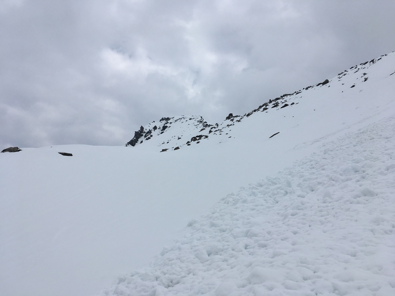 Hinten sieht man die Steilstufe mit der riesigen Lawine: