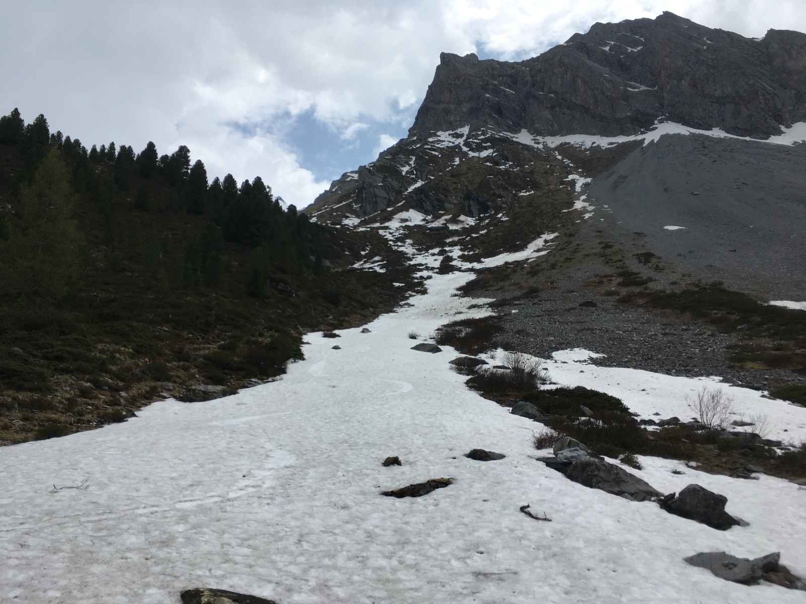 An sich ist es eine schöne Tour, aber vermutlich in „Altschneewintern“ nicht zu empfehlen: Entweder zu gefährlich oder aber (wenn alles unten ist) verunstaltet.