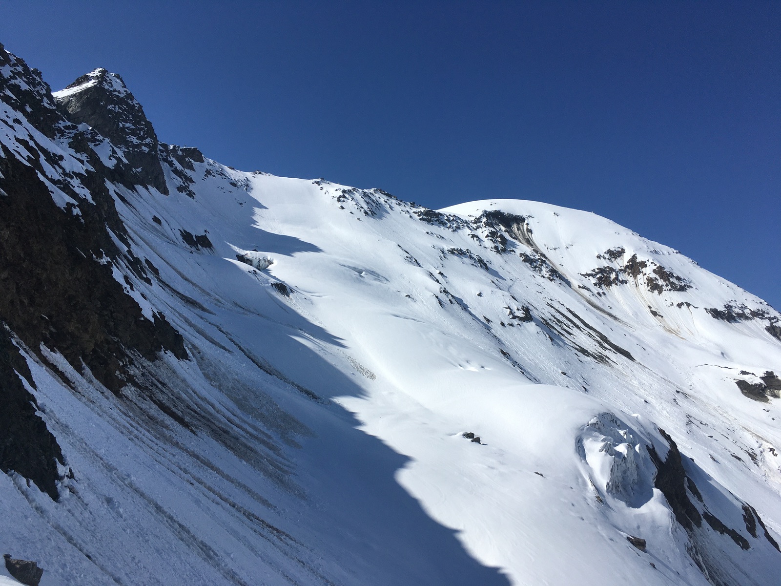Blick auf die Nordhänge der Weißseespitze - die Nordwand selber hat schon wenig Schnee (und mittlerweile noch viel weniger Eis ...):