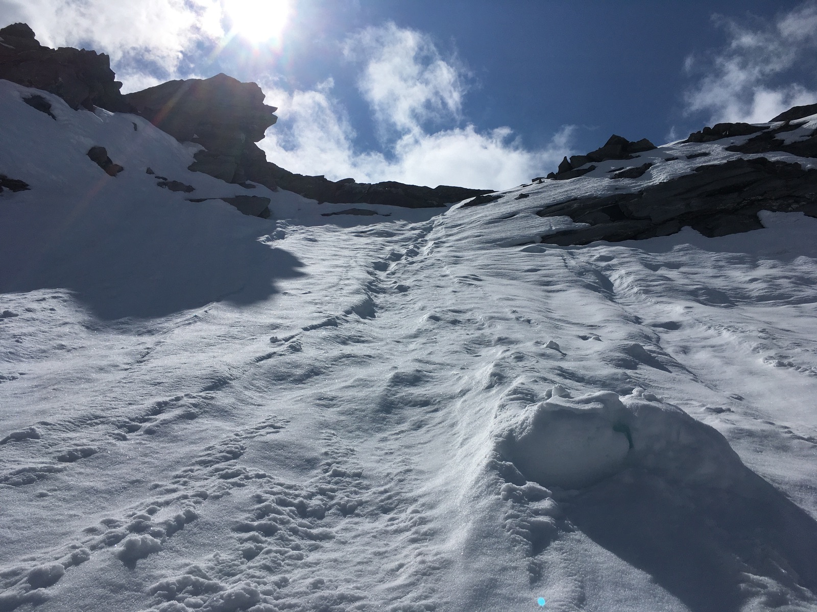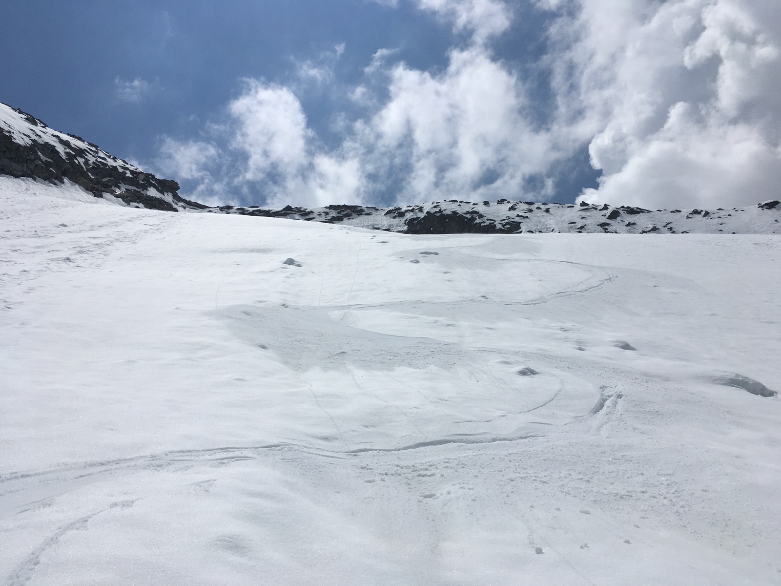 Abfahrt oben zunächst schöner Firn: