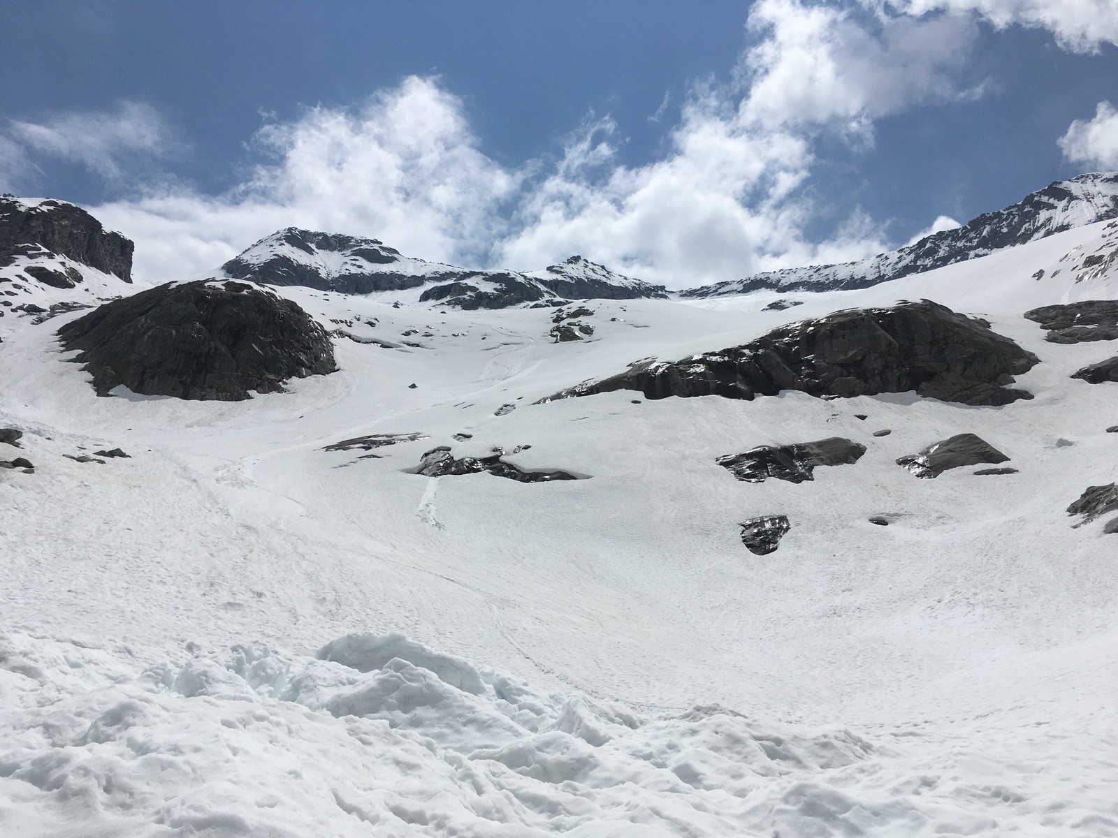 Unten guter Sommerschnee: