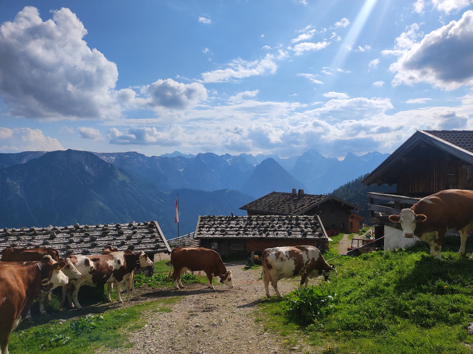 2: Zwei Stunden später ist an der Dalfaz Alm klar, dass das Wetter wieder auf die schöne Seite schlägt.