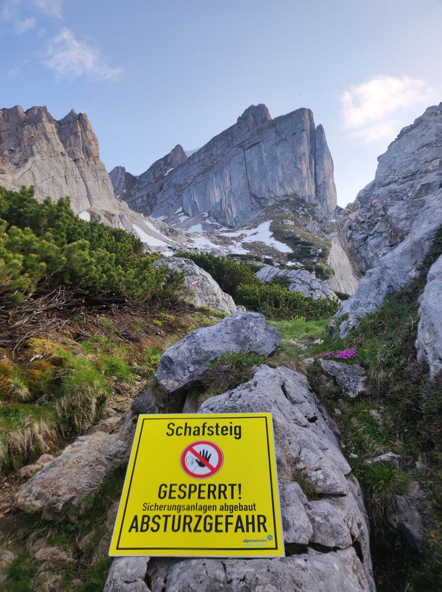 Anmerkung: Wenn man den Steig vom Marchgatterl aus begehen will, warnt einen ein Schild vor dessen Unbegehbarkeit wegen abgebauter Sicherungen. Stimmt aber nicht - die Stahlseile (,die ein Geübter aber eh nicht braucht,) sind vorhanden.