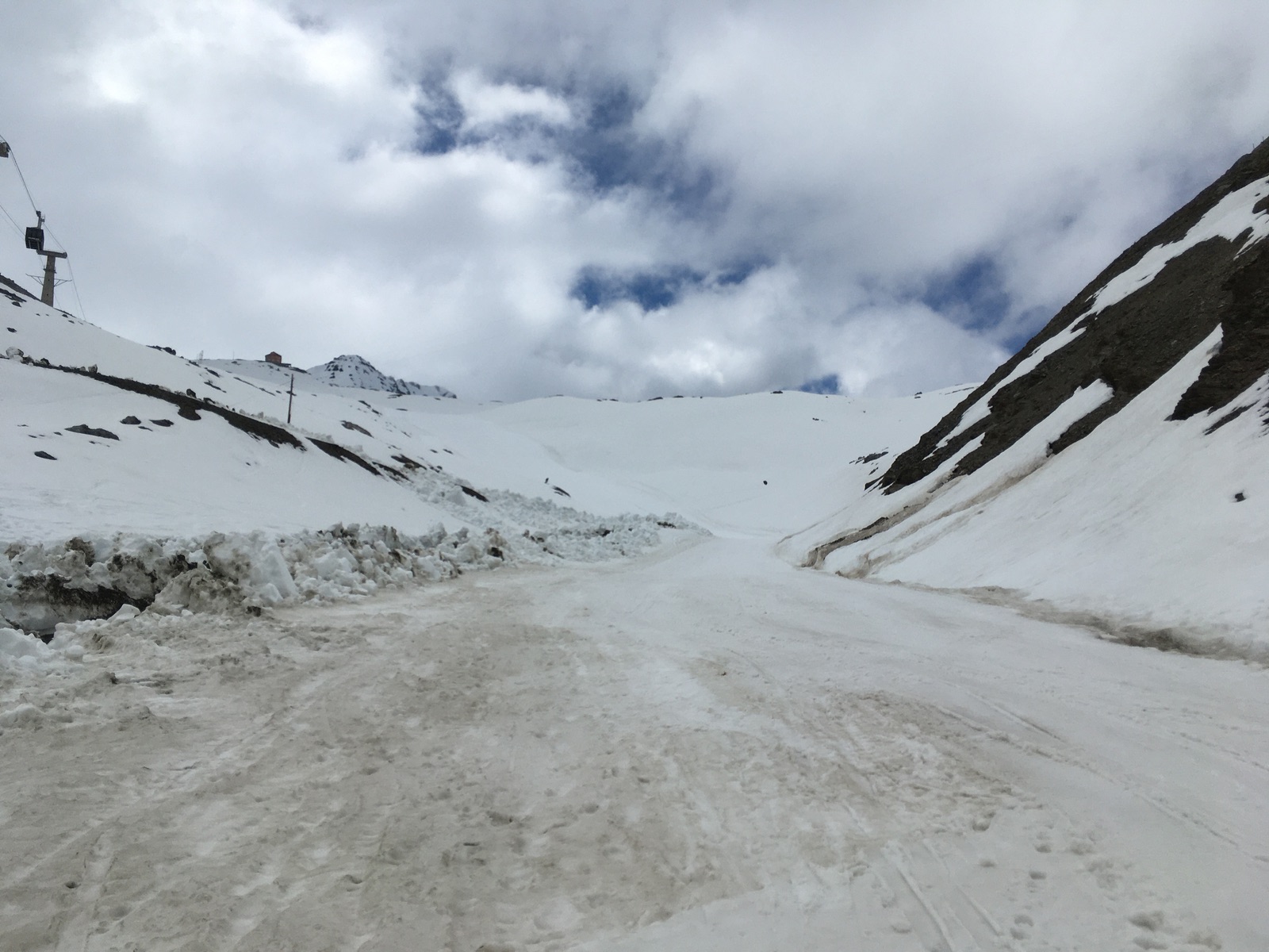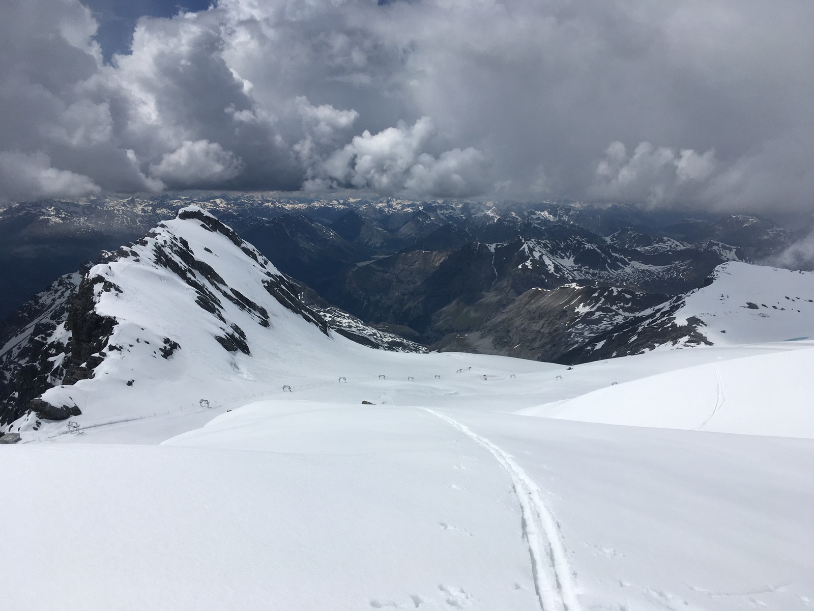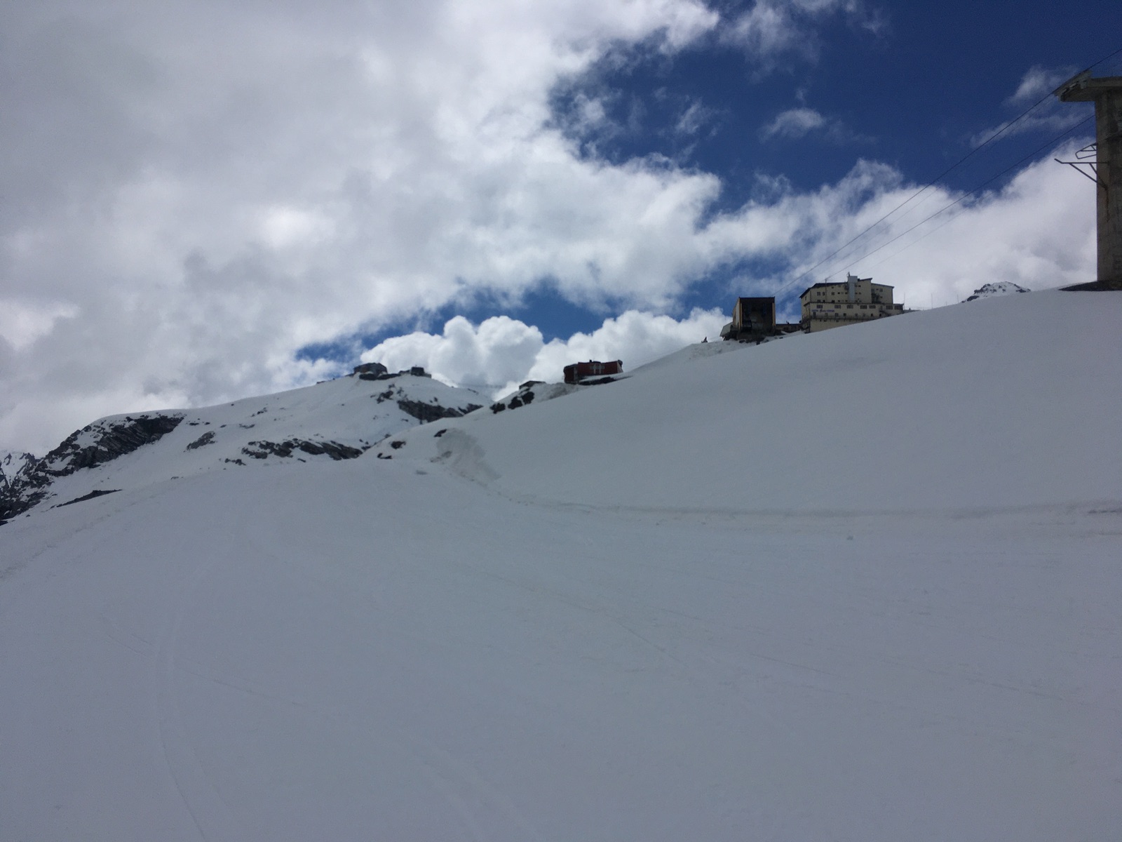 Nach der Übernachtung auf der netten Zufallhütte und gutem Essen sollte es auch am Sonntag noch auf Skitour gehen. Da es am Abend und in der Nacht teilweise intensiv geregnete hatte und wohl auch erst spät aufklarte, entschied ich mich gegen eine Tour im Gebiet der Zufallhütte und wechselte ans hochgelegene Stilfer Joch. Insgesamt ist das (der Transfer) aber doch sehr mühsam und der hohe Andrang an "Motorsport-Enthusiasten" am Pass und der Straße dorthin ist auch nervig. Einziges Manko an der Zufallhütte war für die Tourenplanung mit Skiern das späte (aber gute) Frühstück auf der Hütte erst um 7:30 Uhr. Laut dem Hüttenwirt ändert er das dann aber zur Hochtourensaison - es waren halt sonst nur Wanderer unterwegs und da reicht 7:30 Uhr.