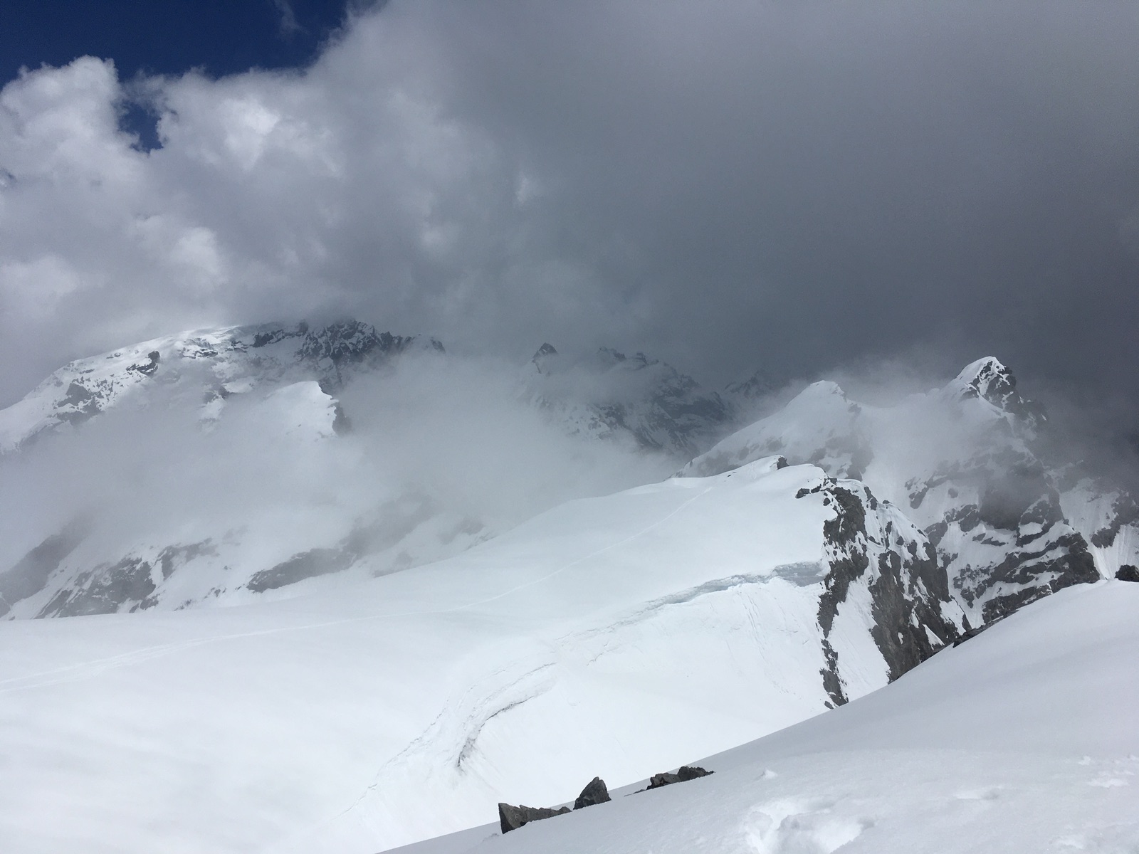 Blick von der Kristallspitze Richtung Ortler (mal frei, mal in Wolken):